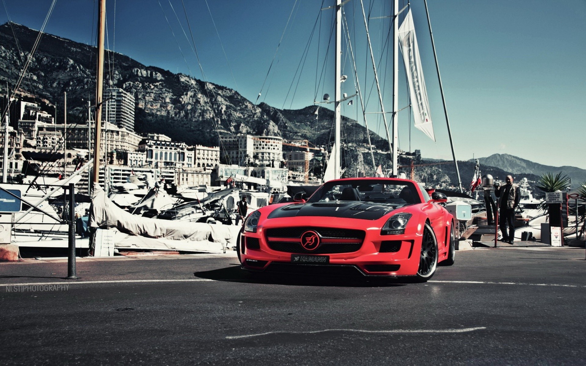 Voiture de course et port