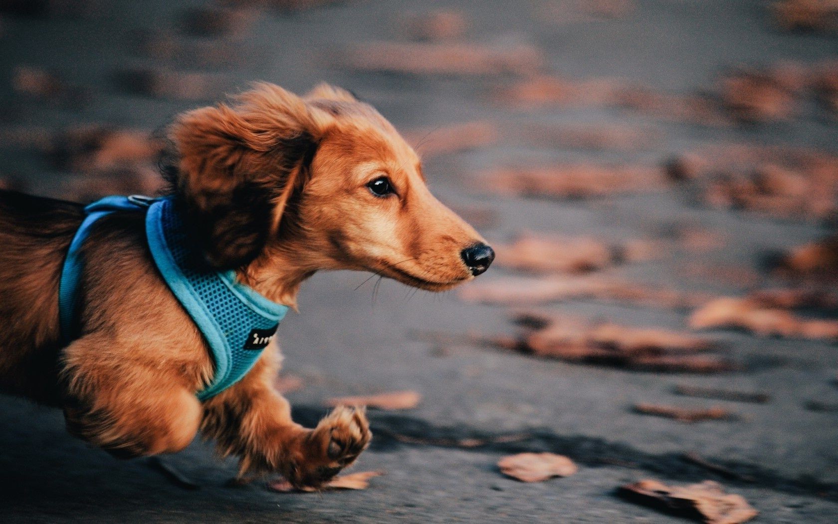 Beau chien dans un harnais