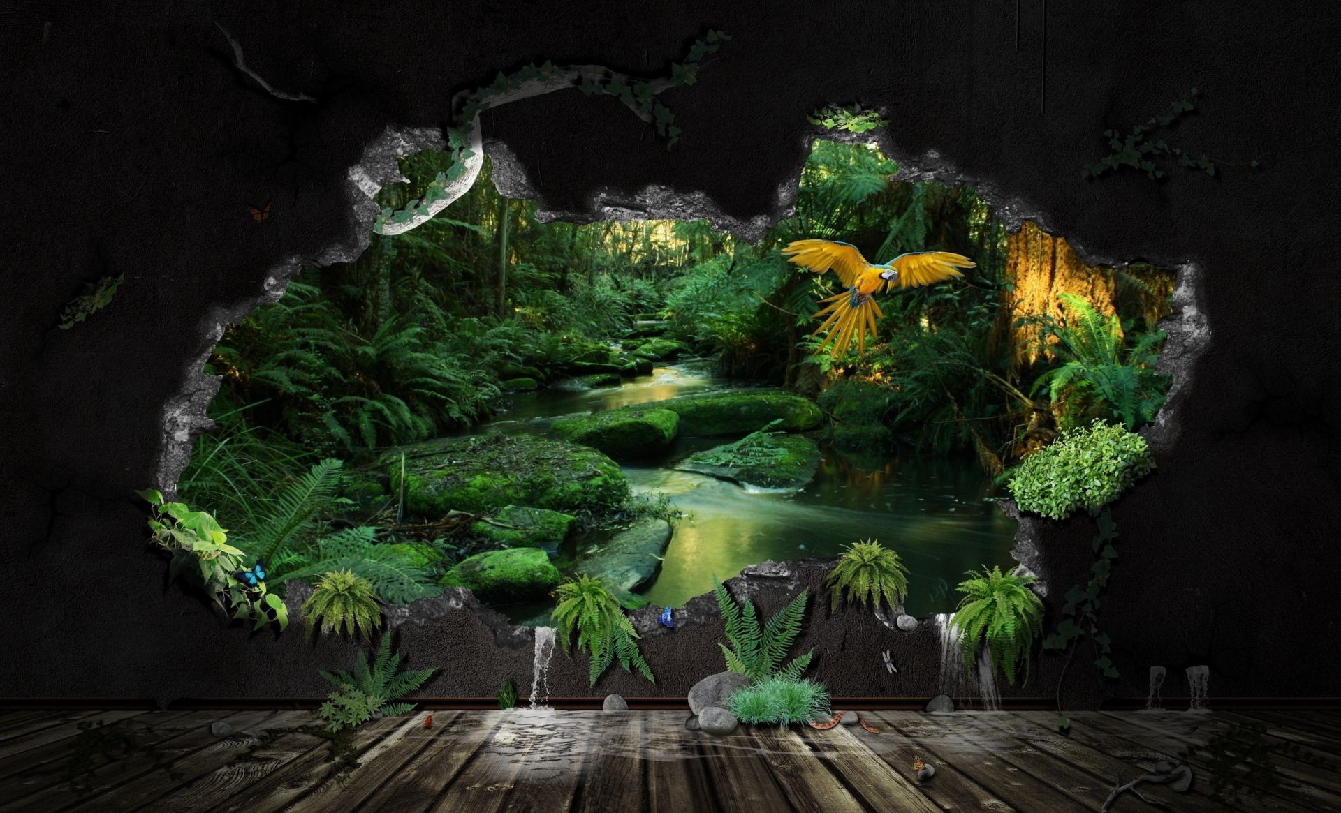 À travers un trou dans le mur ouvre un monde forestier inexploré