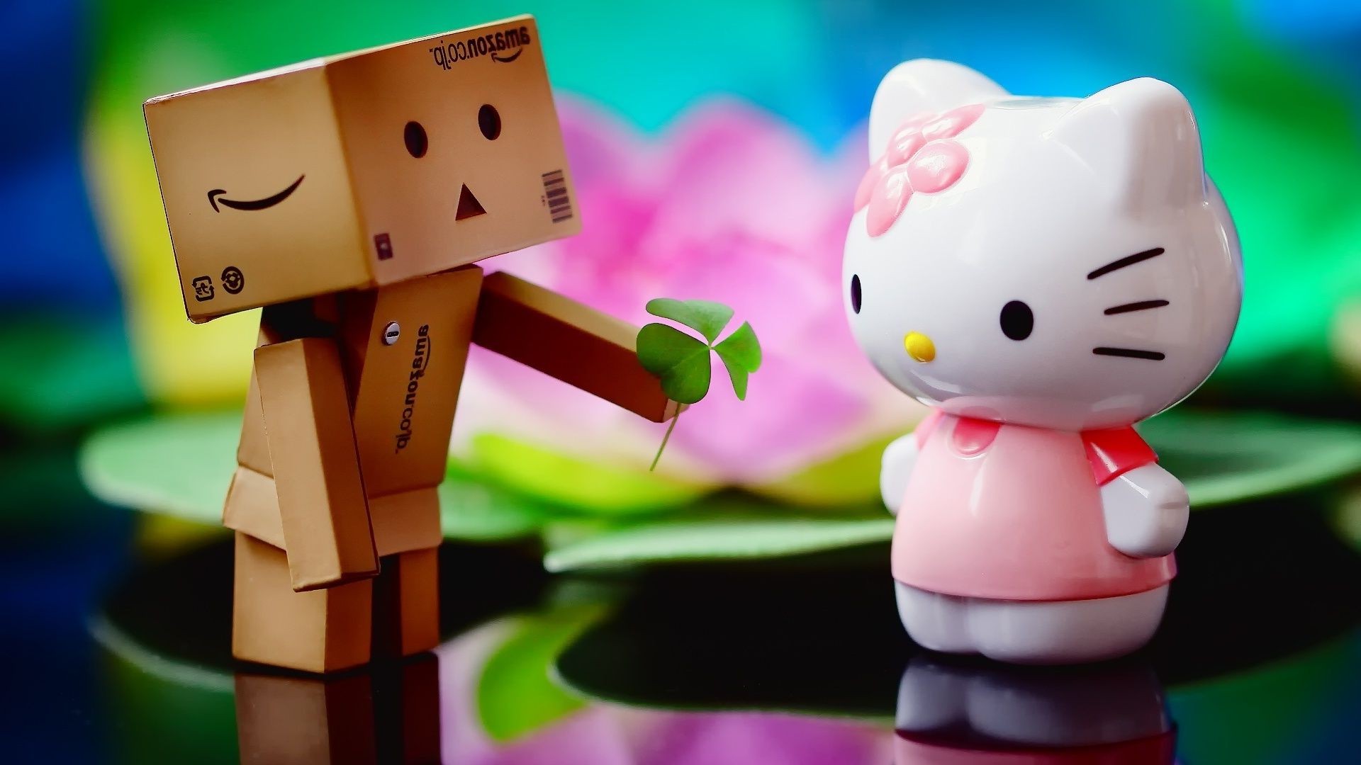 Un jouet de boîtes donne un trèfle à un autre jouetUn jouet de boîtes donne un trèfle à un autre jouet