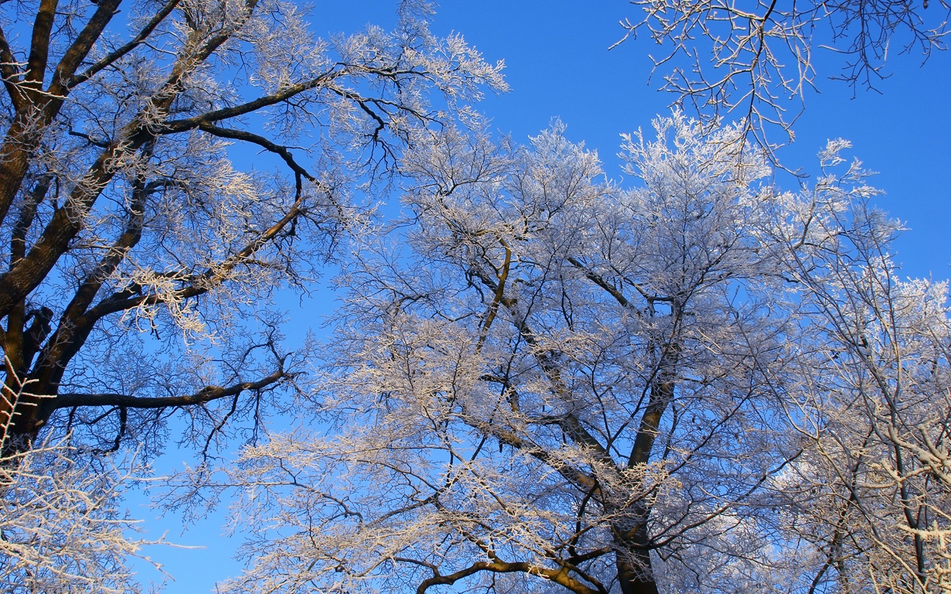 Branches dans le givre sur fond de ciel bleu