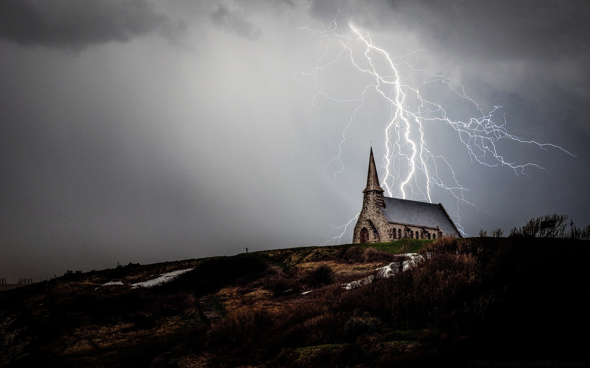 Éclairs d'orage scintillant au-dessus de la maison