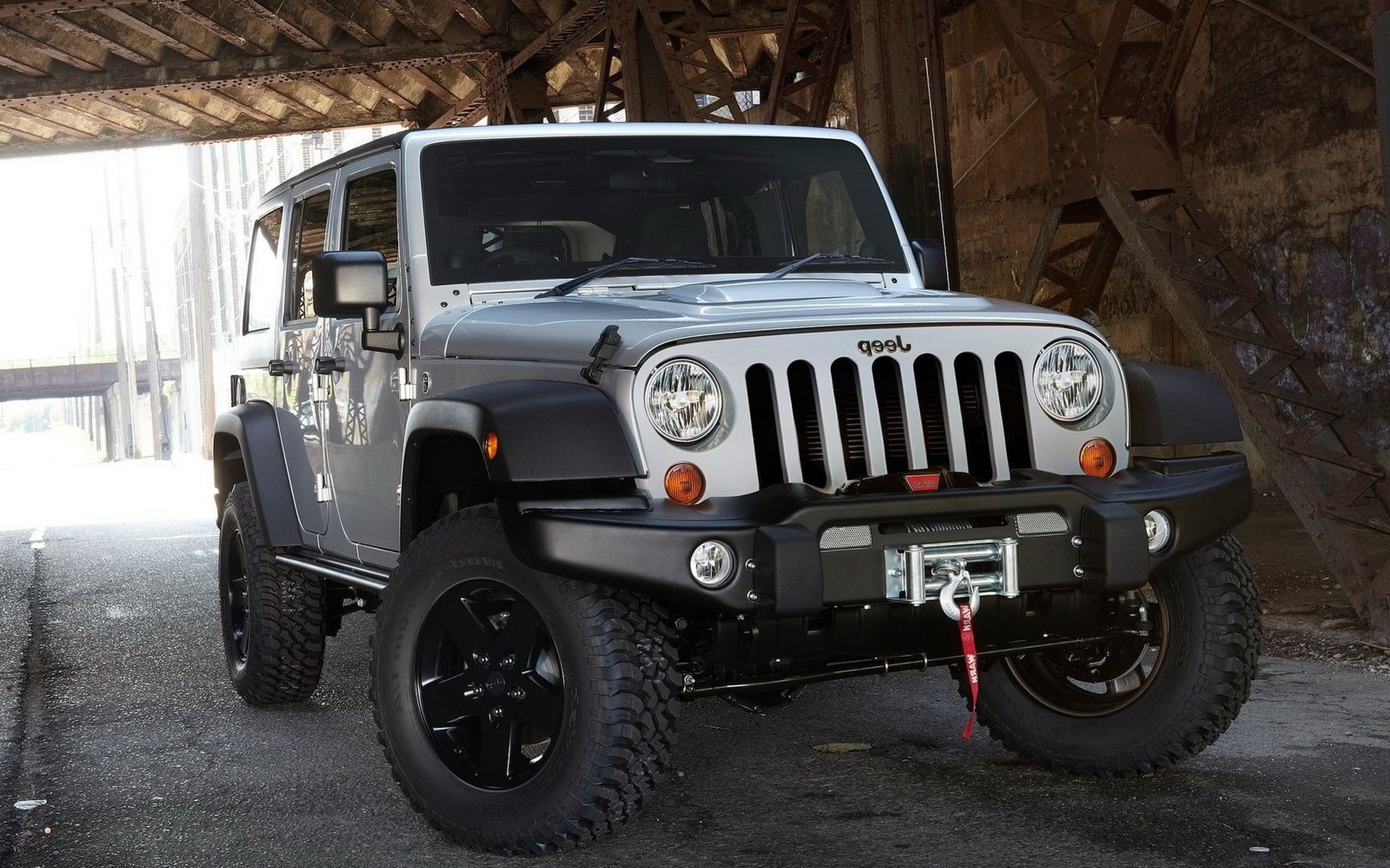 Jeep grand cherokee debout dans la forêt parmi les arbres géantsJeep grand Cherokee debout dans la forêt parmi les arbres géants