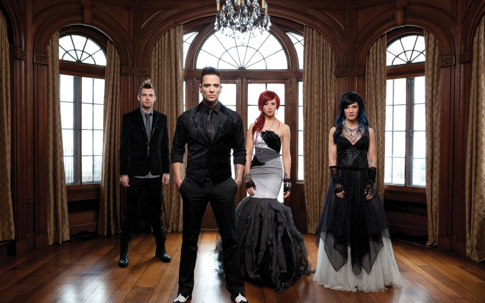 Groupe de musique de quatre personnes debout étreindreGroupe de musique de quatre personnes debout étreindre