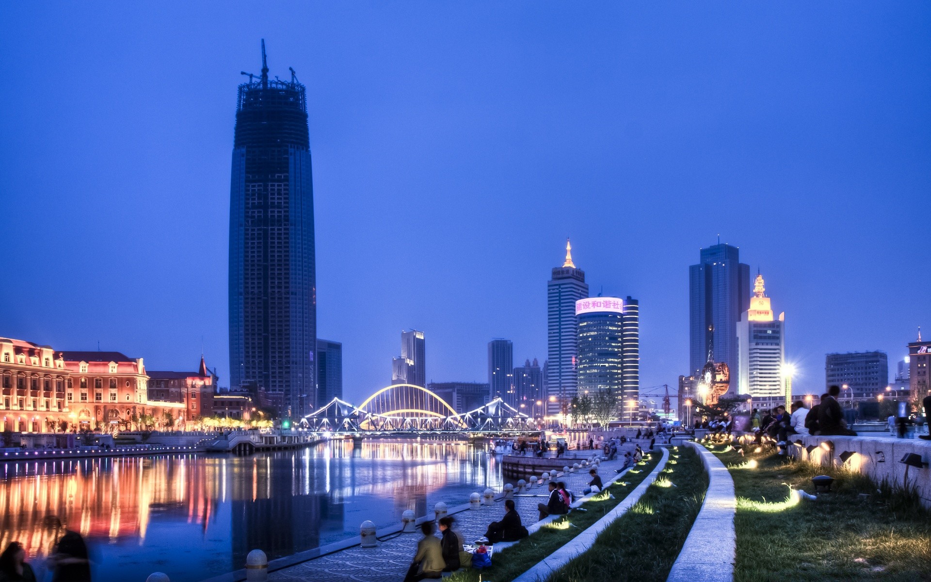 La lumière du pont dans la nuit et son reflet dans l'eau