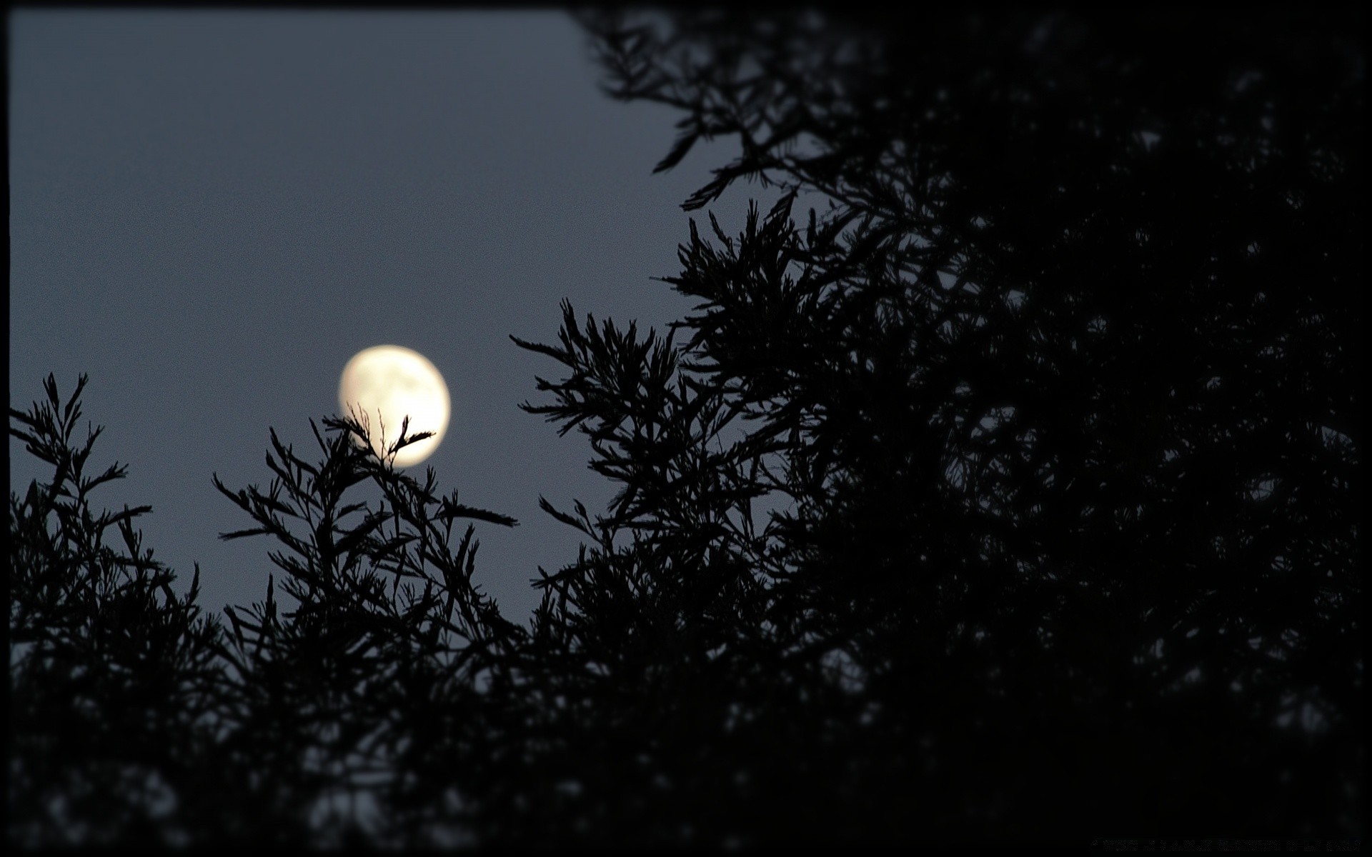 Image en noir et blanc avec la lune au-dessus de la forêt
