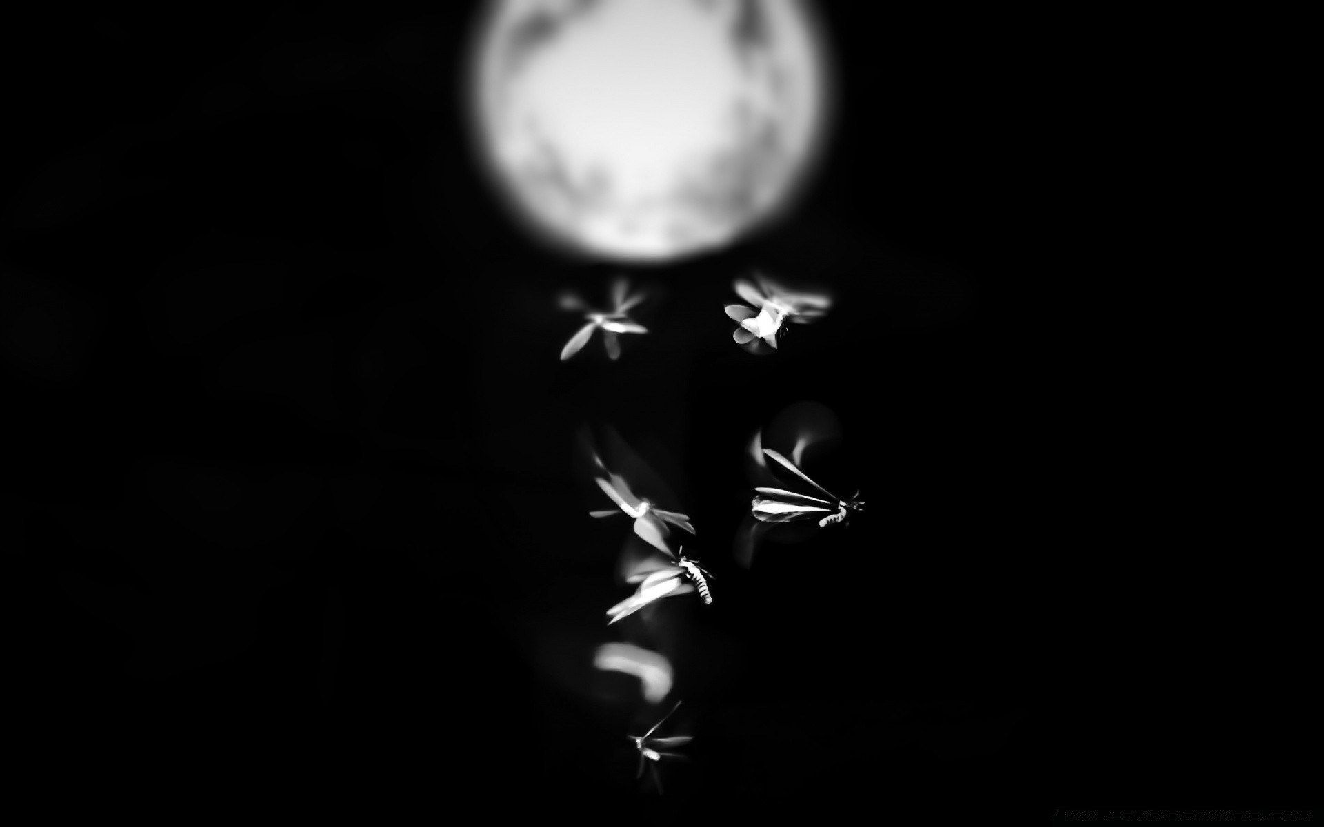 Les moustiques dans l'obscurité volent sur le fond de la luneLes moustiques dans l'obscurité volent sur le fond de la lune