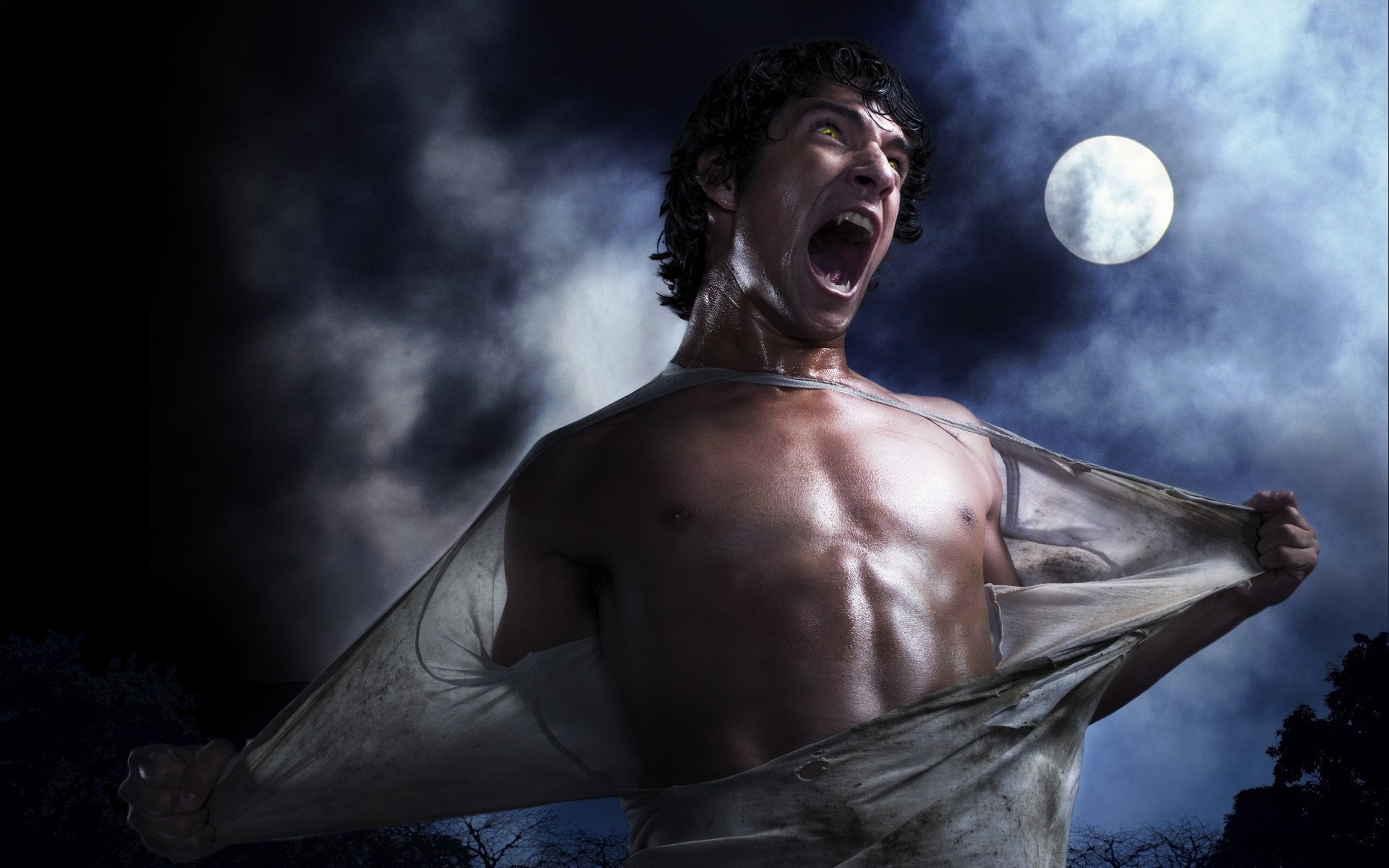 Les jeunes sur le fond de la maison et la lune de la série télévisée