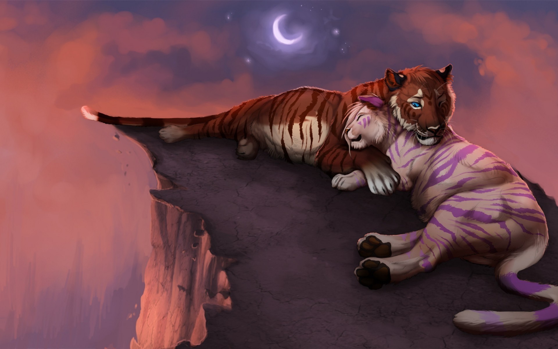 Animaux sur fond de lune