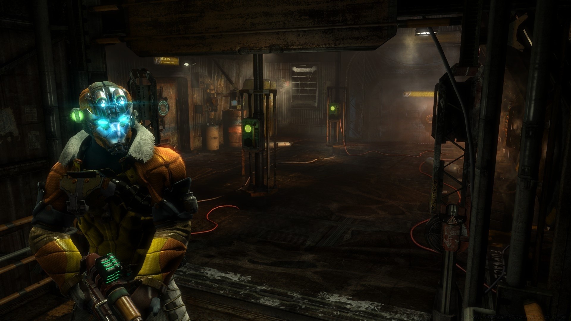 Joueur avec un visage éclairé avec des armes dans l'abandon