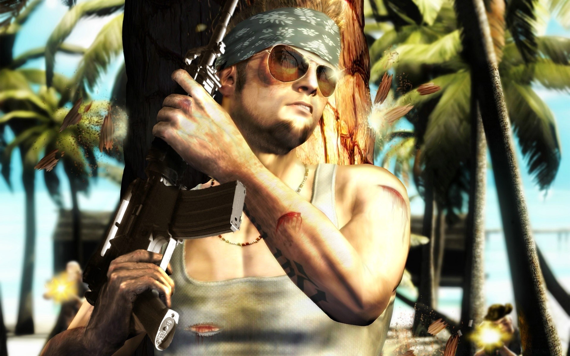 Le héros du jeu Farcry 4 posant sur le fond de la jungle