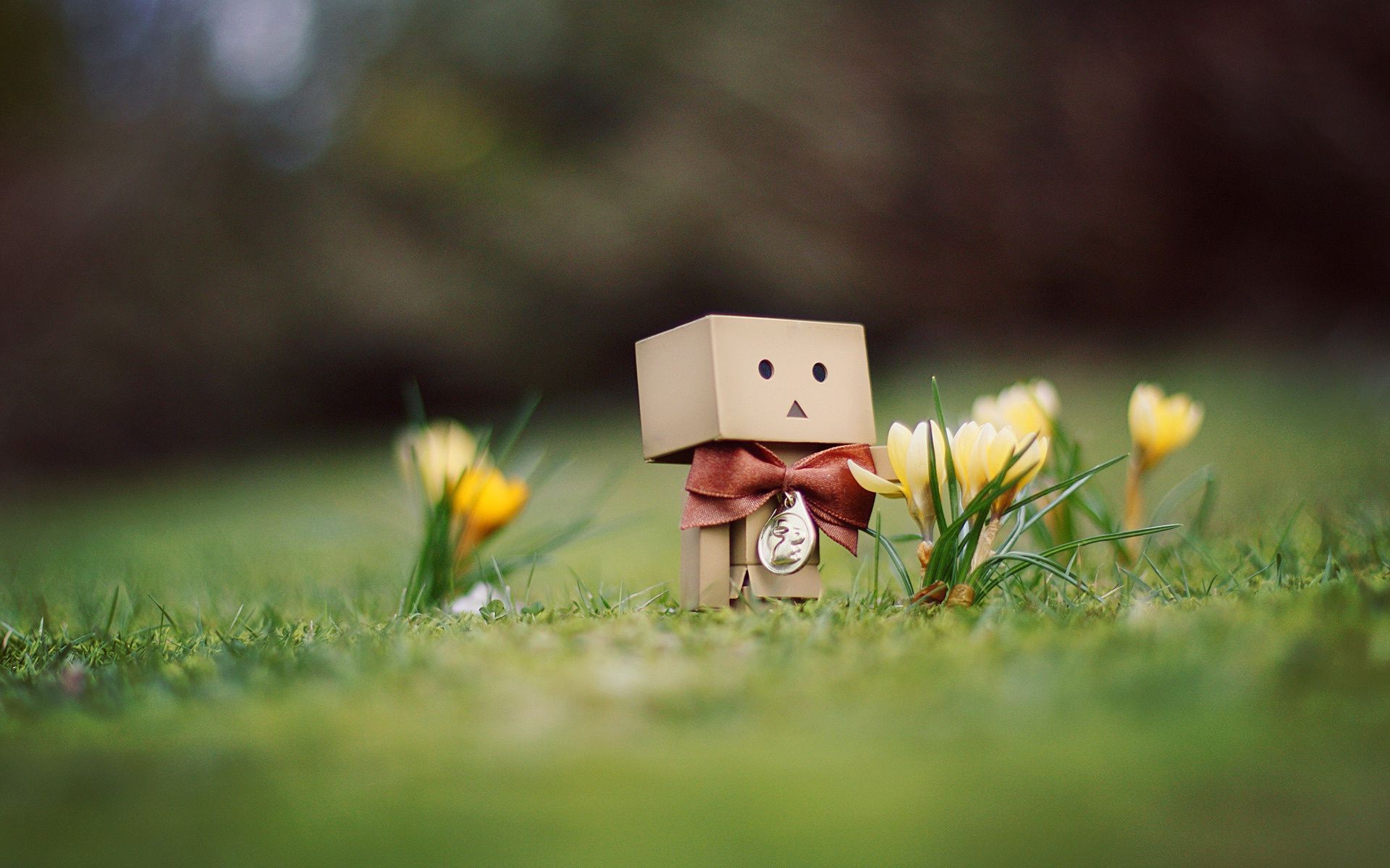 Homme avec un arc rouge sur l'herbe