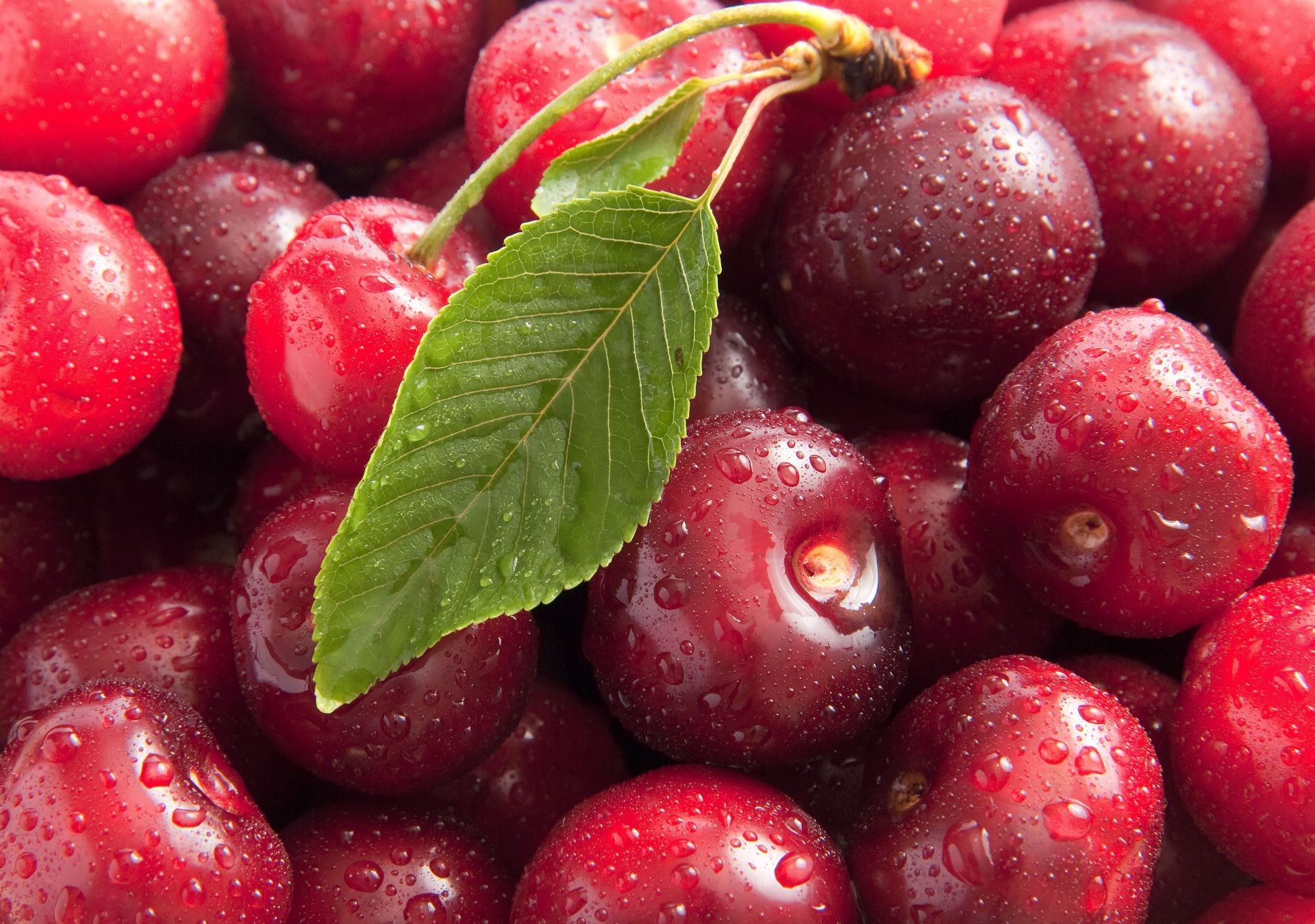 Cerise mûre avec une feuille