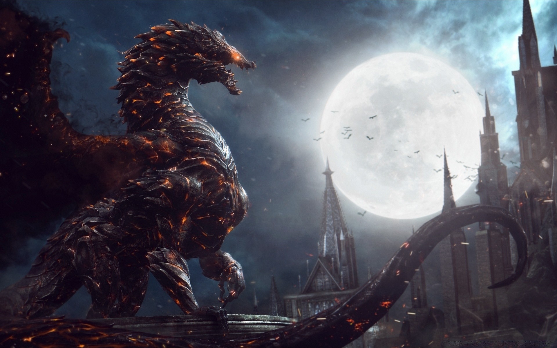 Dragon dans le ciel au-dessus de la rivière de montagne
