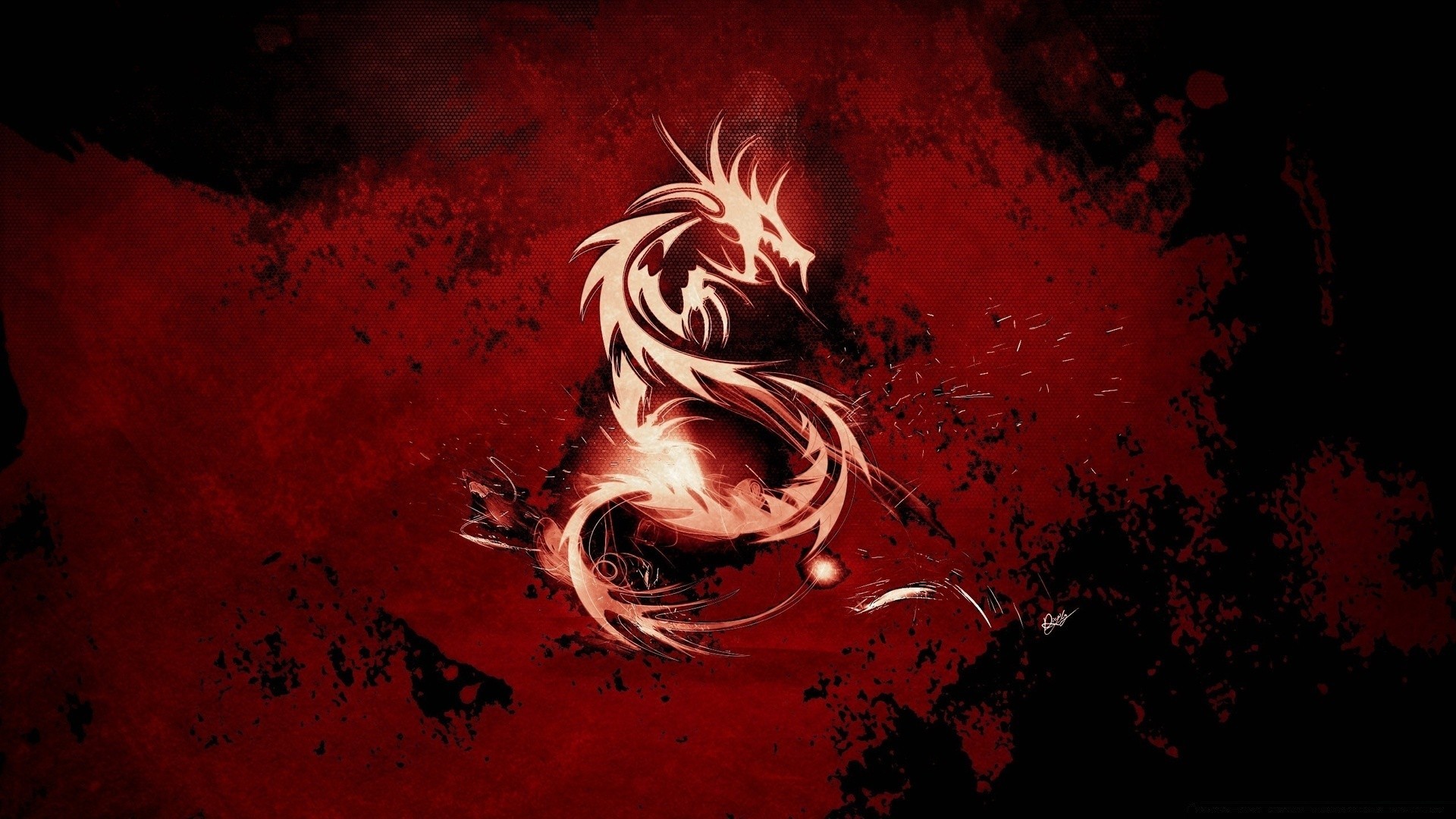 Dragon avec des ailes volant devant les oiseaux et les poissons