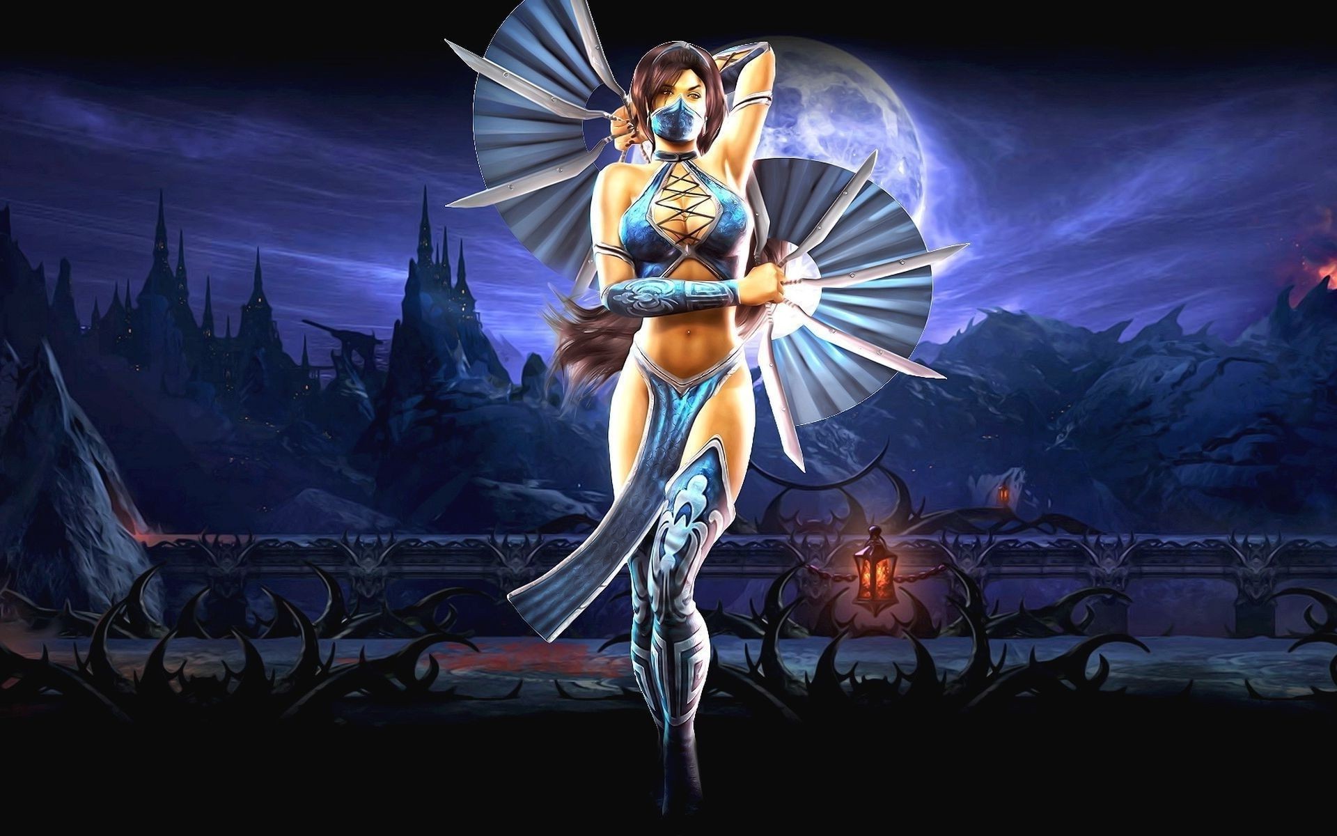 Illustration d'une jeune fille avec des couteaux et des ventilateurs