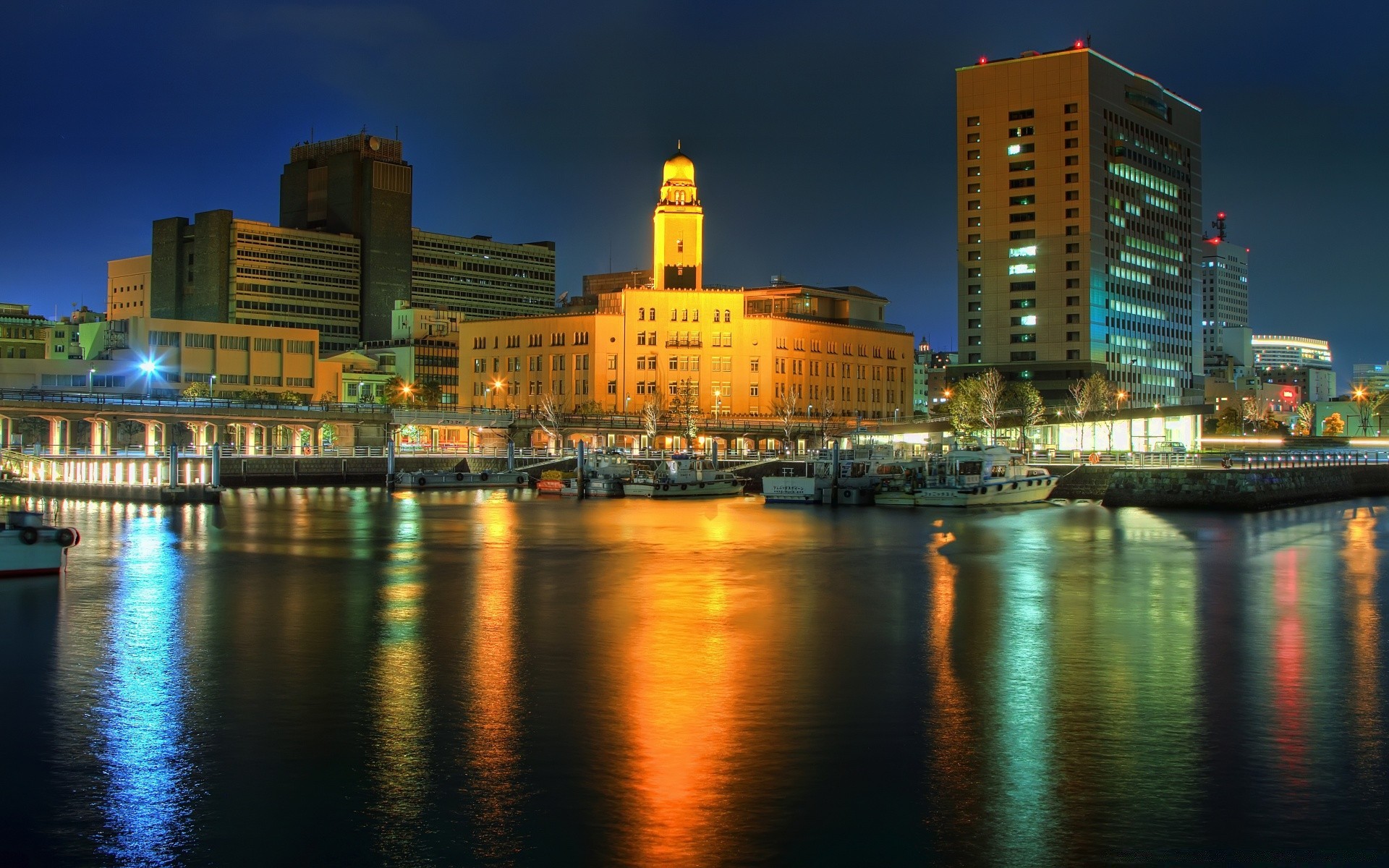 Ville de nuit. Beau rétro-éclairage. Réflexion dans l'eau