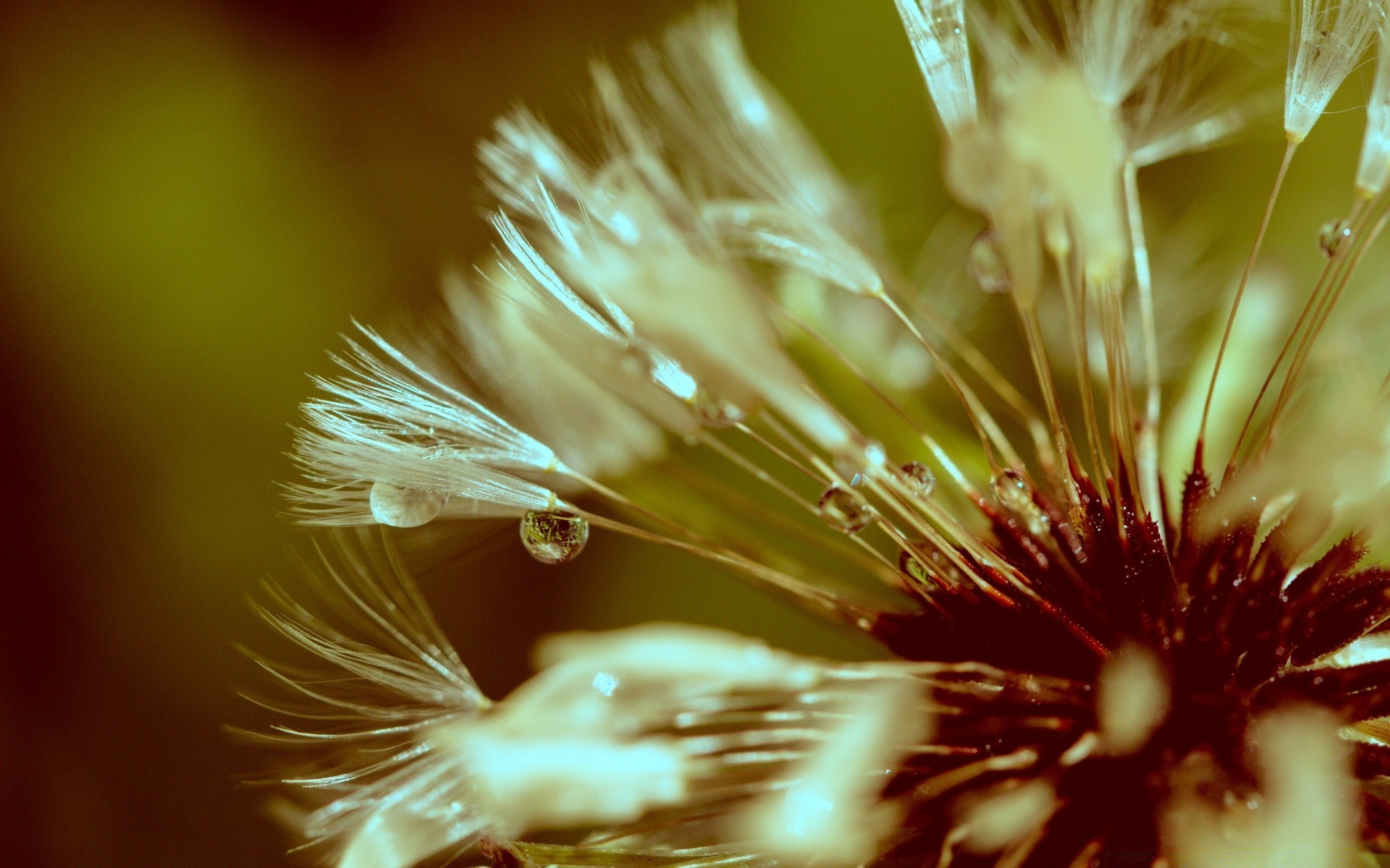 Gros plan d'un pissenlit avec des gouttes d'eau
