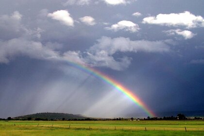 Arc-en-ciel d'été se cache dans les nuages