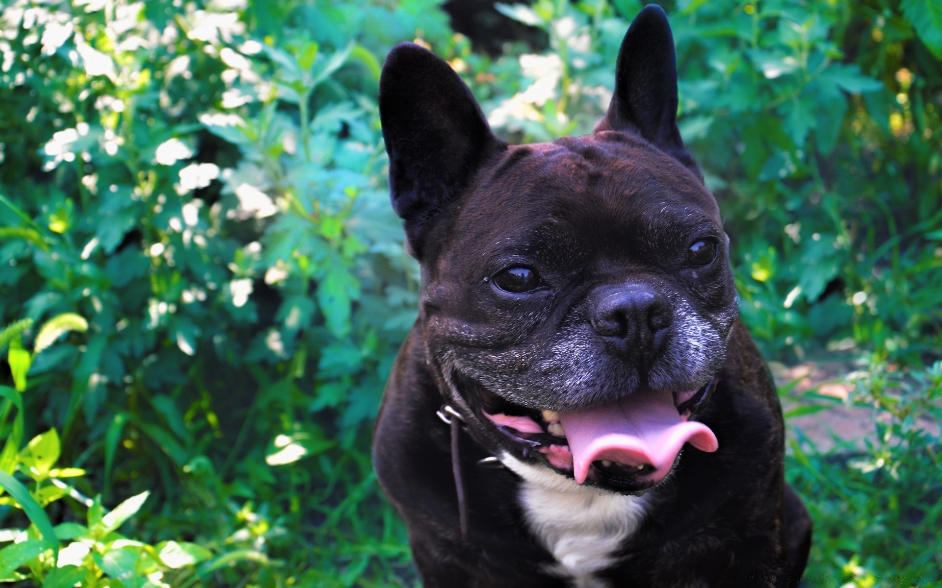 Chien sur fond de feuillage nature animaux