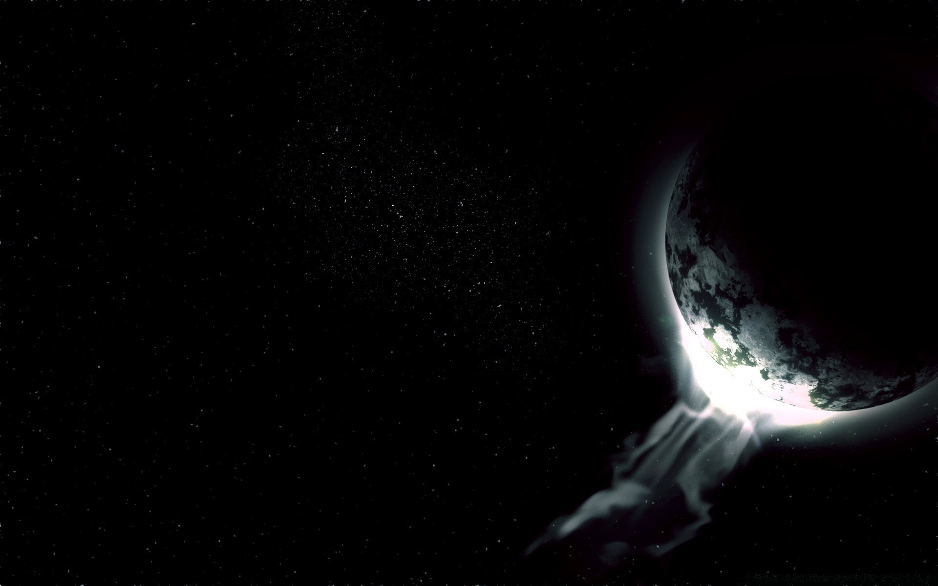 La lumière qui tombe sur la planète dans une galaxie sombre