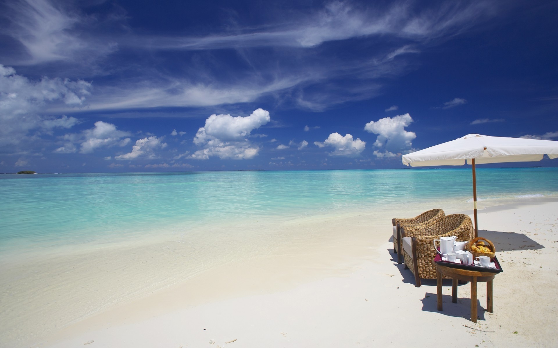 Plage blanche comme neige et mer bleue