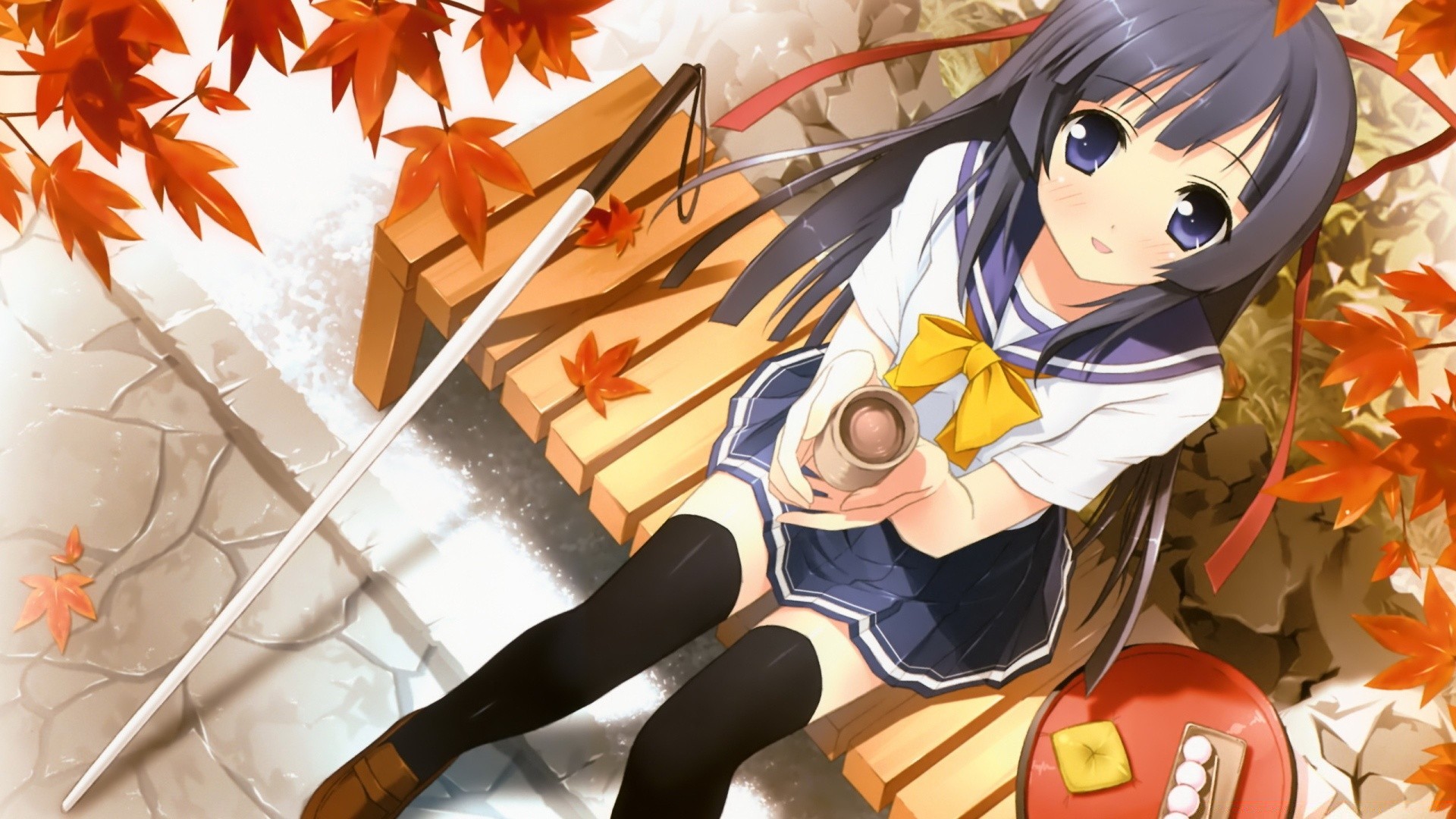 Fille de l'anime dans un chapeau sur un fond d'arbres en fleurs