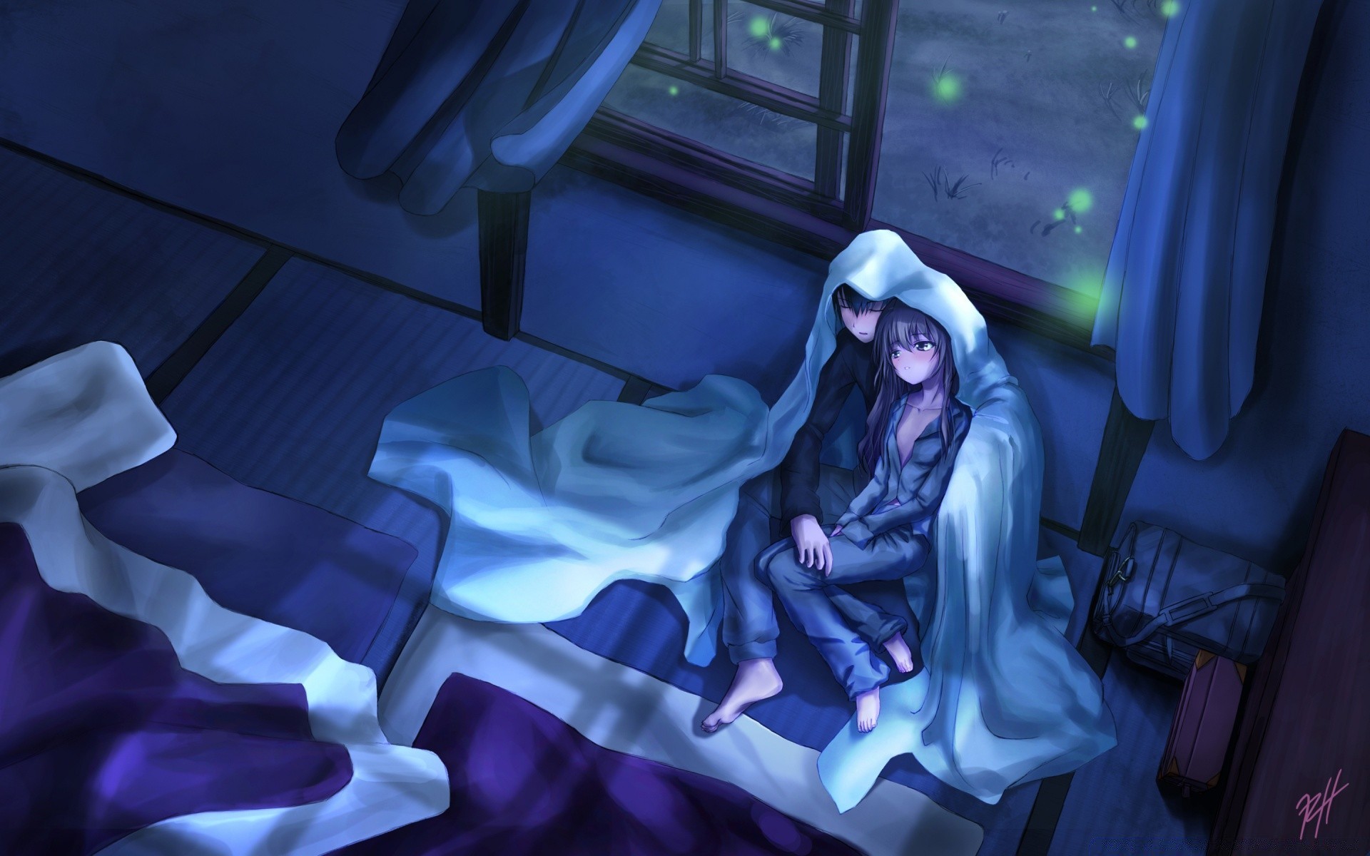 Deux adolescents d'anime tristes sous la couverture