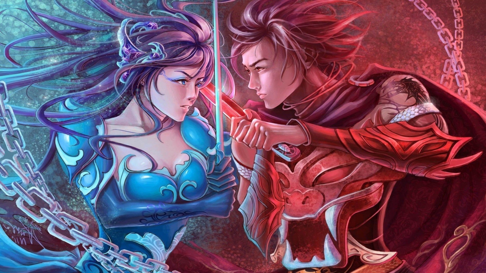 Guerriers fentasi. Guy et fille