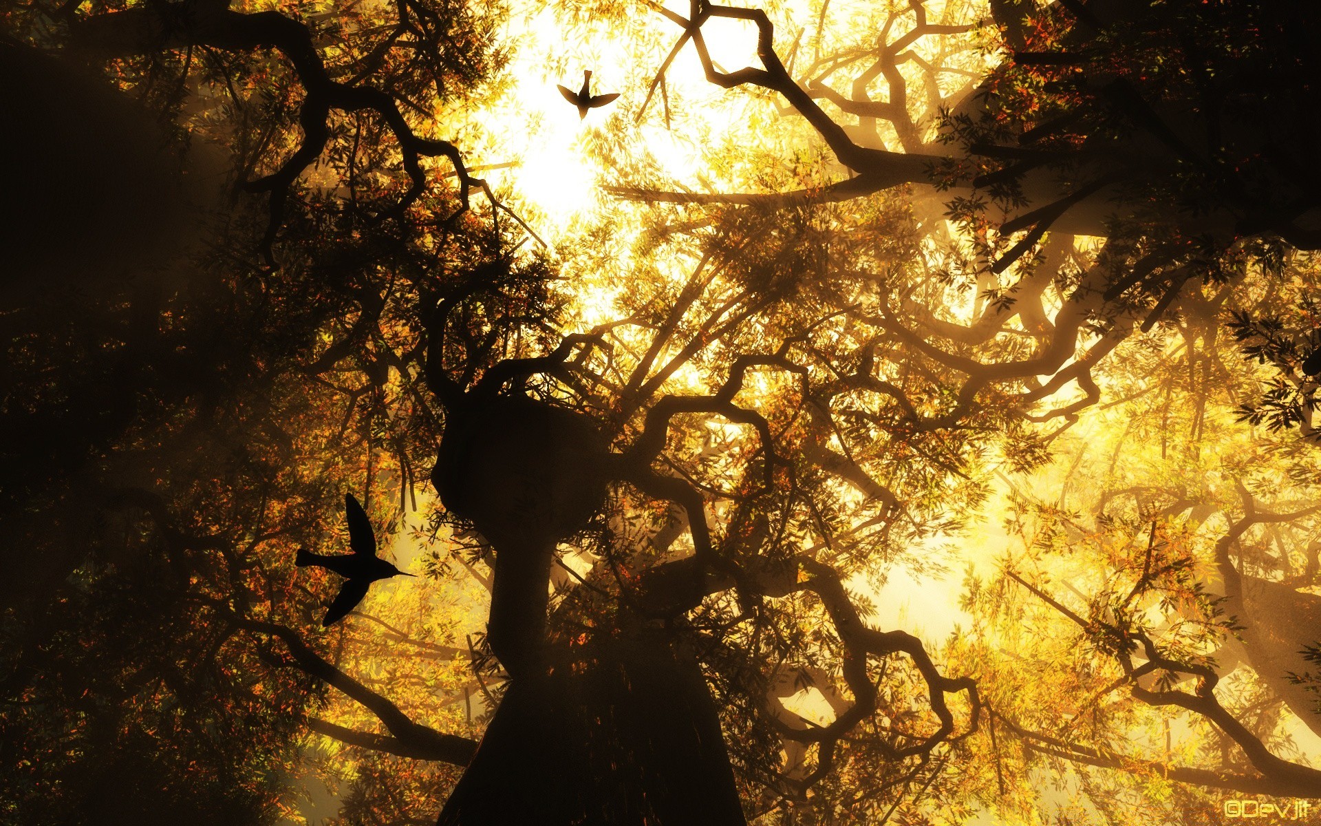 Mouettes volent au-dessus de l'eau dans le ciel clair