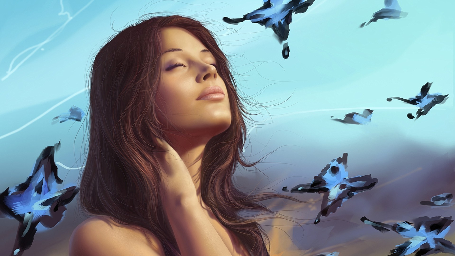 Femme aux cheveux noirs regardant par derrière l'épaule