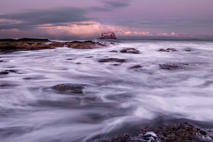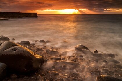 Photo de la côte de l'océan avec une île à l'horizonPhoto de la côte de l'océan avec une île à l'horizon