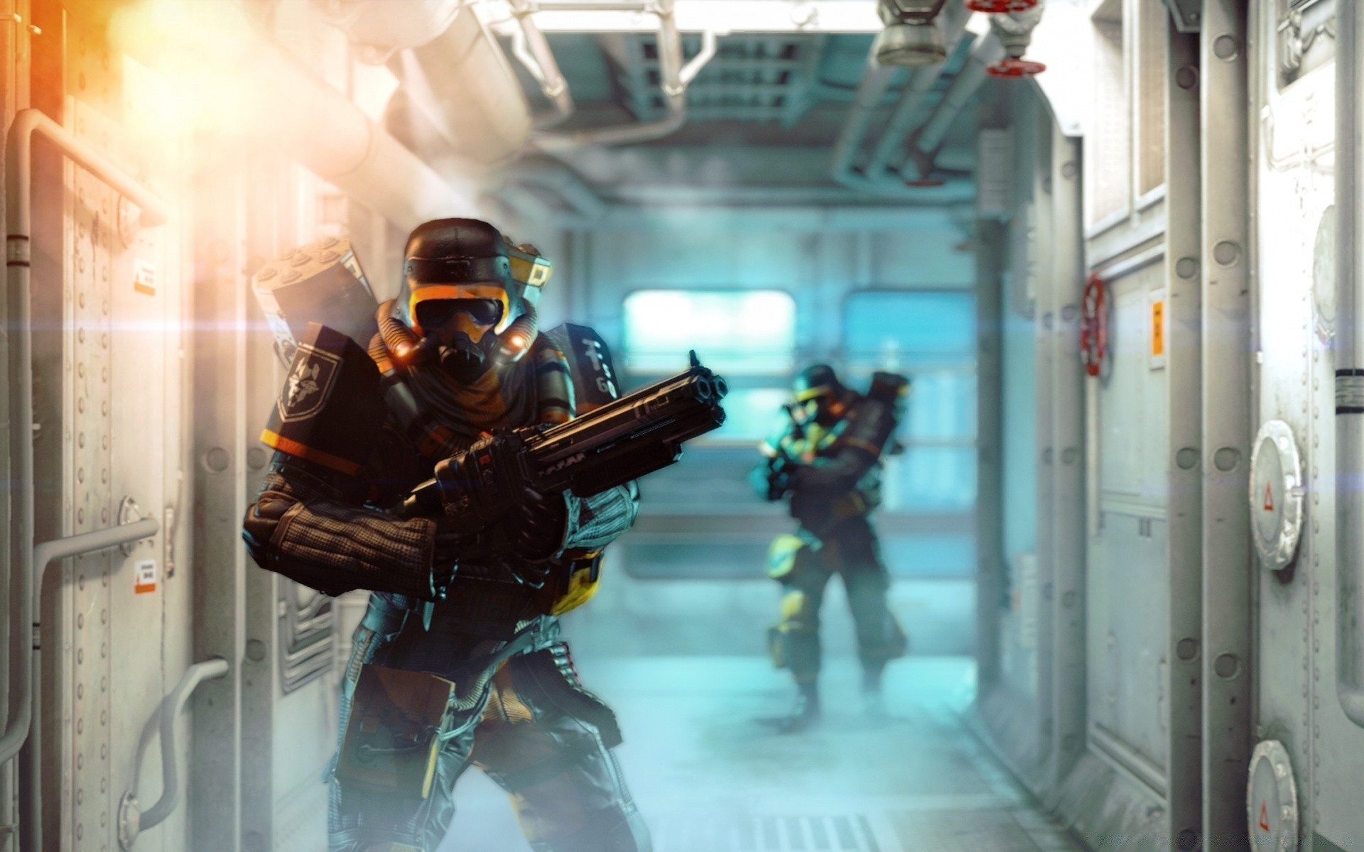 Homme guerrier sur fond de feu et de fumée. Image fantastique sur fond sombre