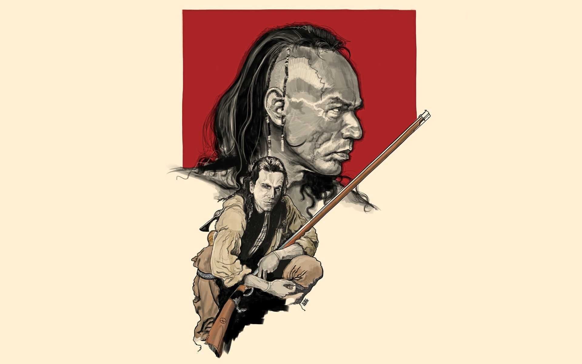 Homme avec une arme à feu et en cravate sur le profil de fond d'un autre homme