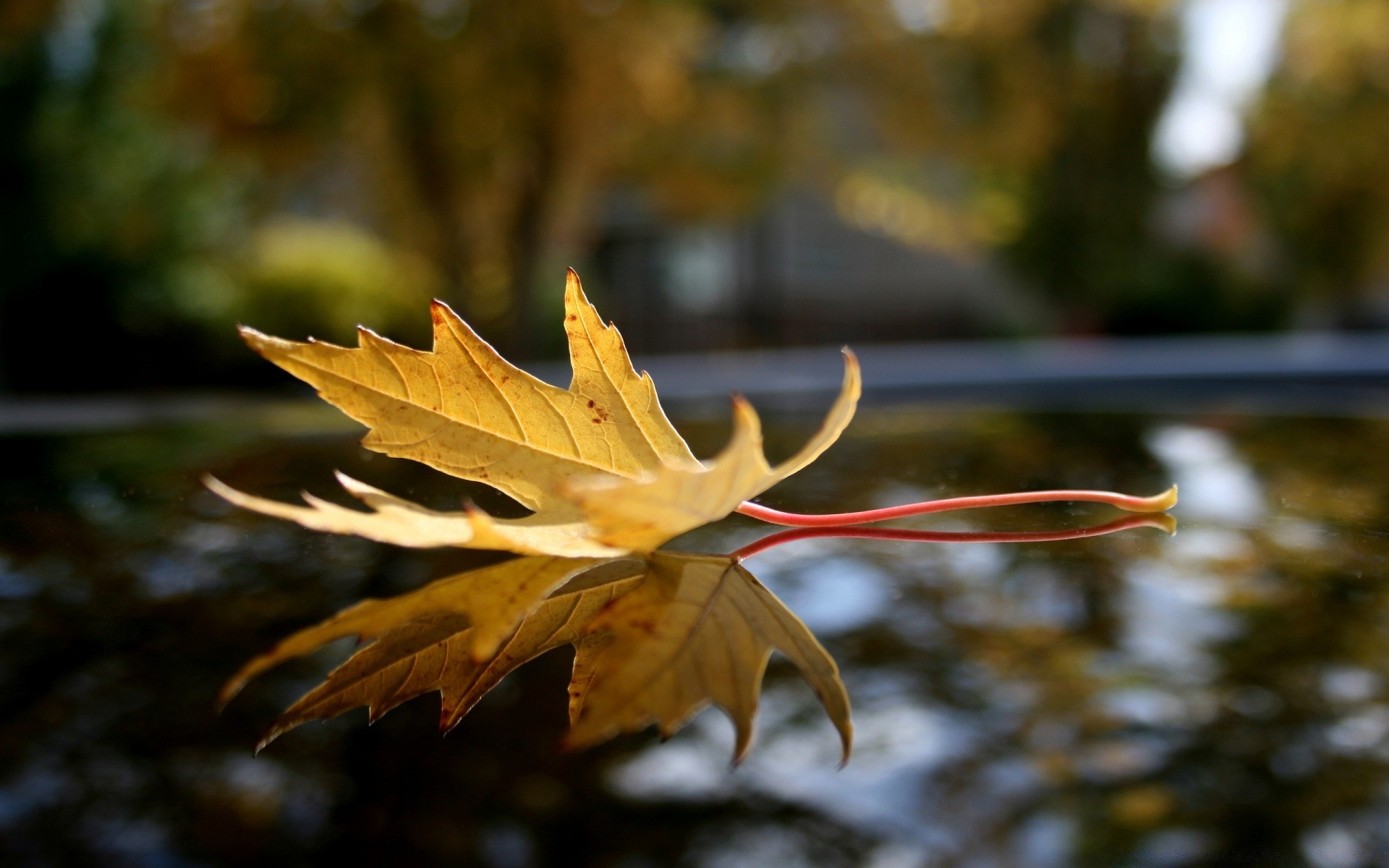 Image d'une feuille d'automne sur fond flou