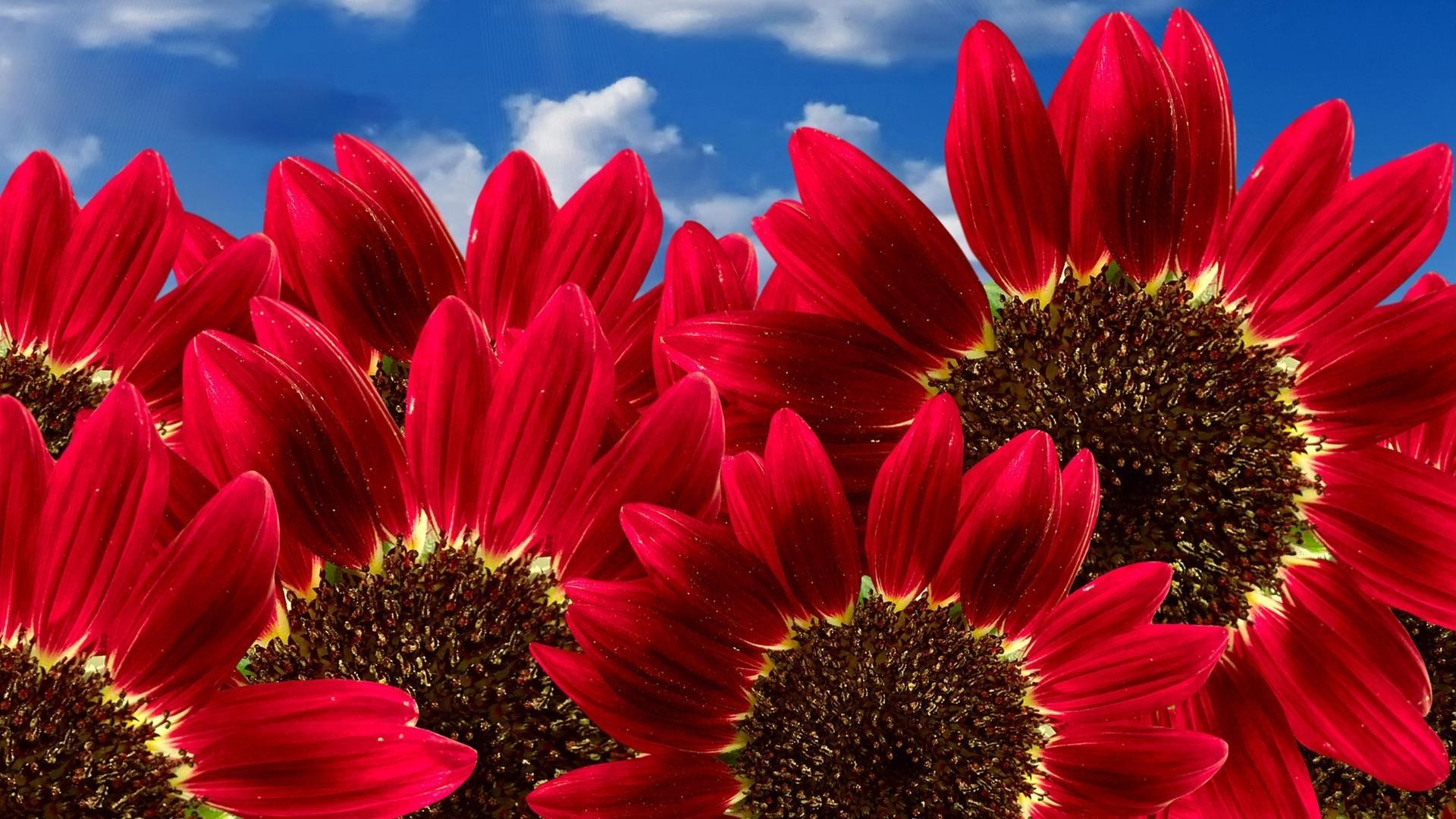 Grandes fleurs sur fond de ciel bleu