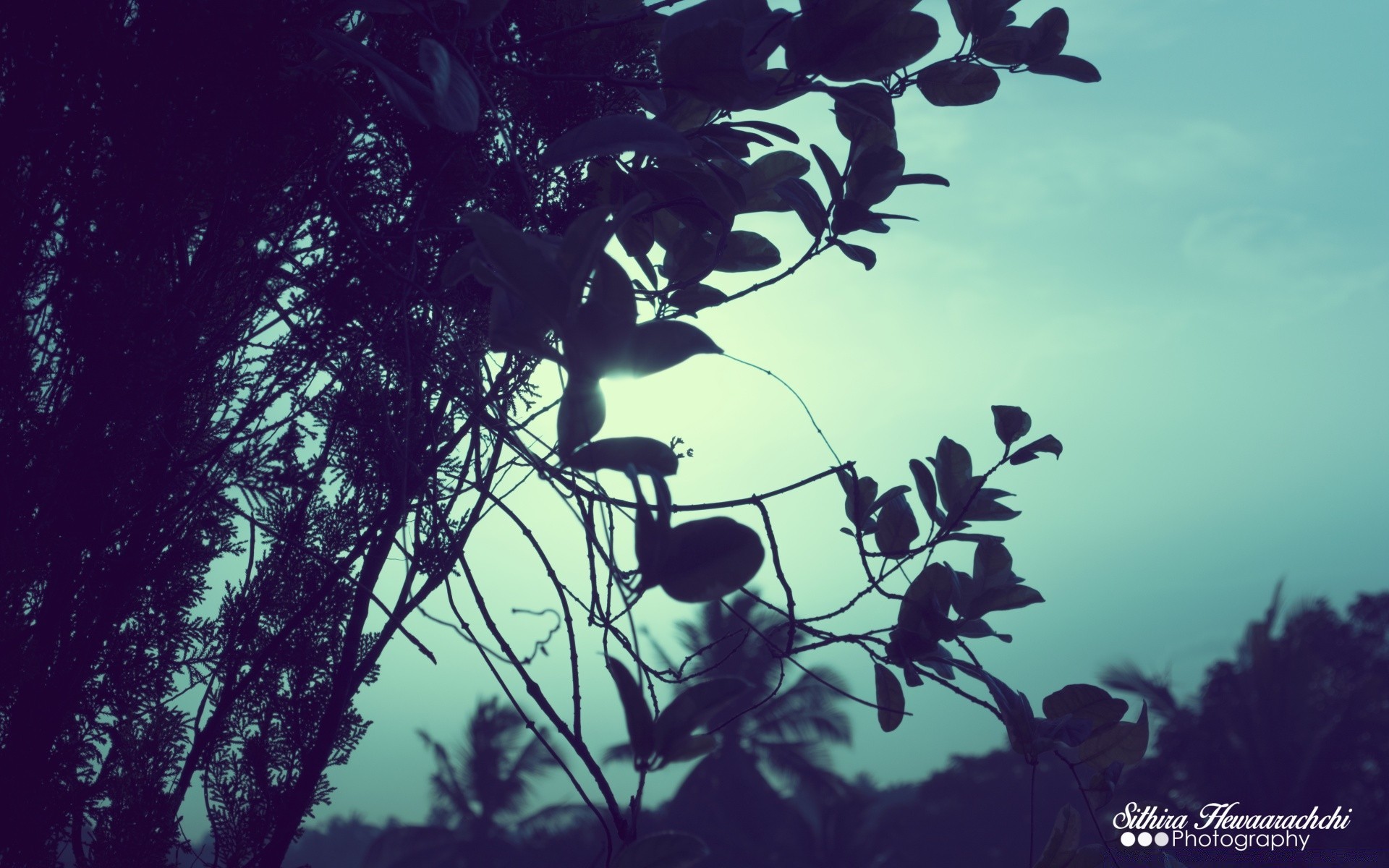 Feuilles vertes sur fond de branches inclinées au-dessus de l'eau