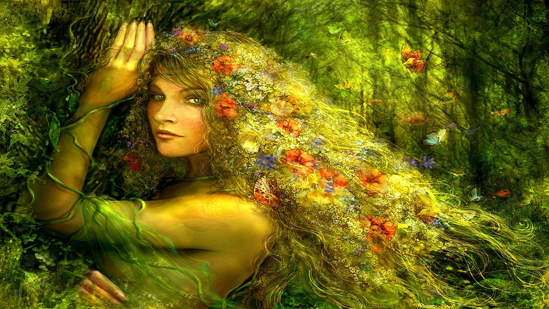 Cheveux de fille de la forêt de fleurs