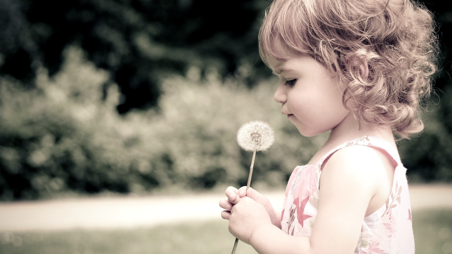 Petite fille tenant un pissenlit fragile