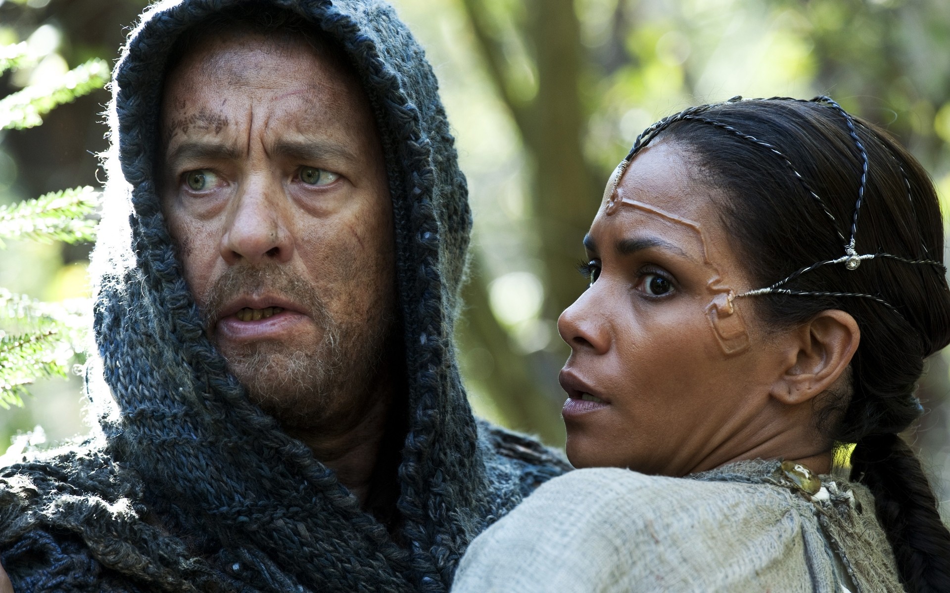Image du film sur le fond d'un homme et une femme en costumes lumineux