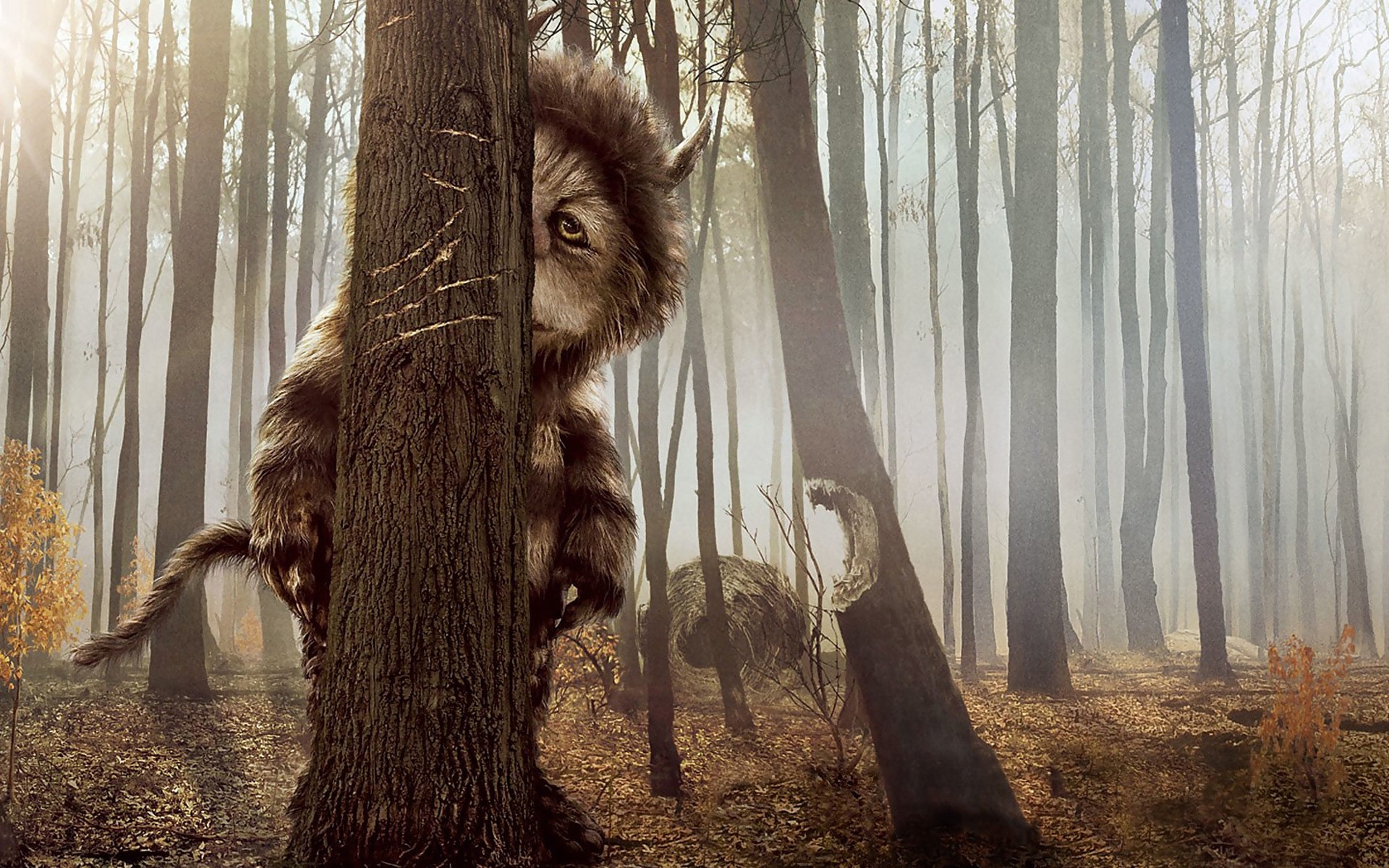 Le sorcier Dumbledore sur le fond de la publicité du film