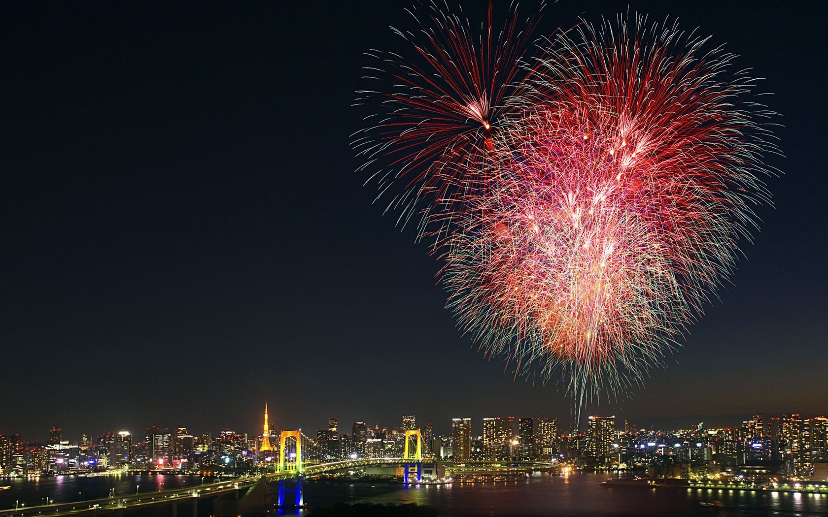 Feux d'artifice et saluts au fond de la ville