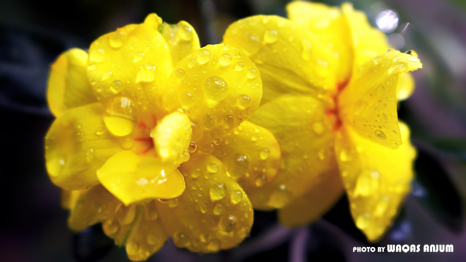 Saison estivale. Fleur jaune dans les gouttes de rosée