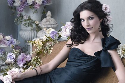 Mariée avec des bouquets et une fleur de rose dans les cheveuxMariée avec des bouquets et une fleur de rose dans les cheveux