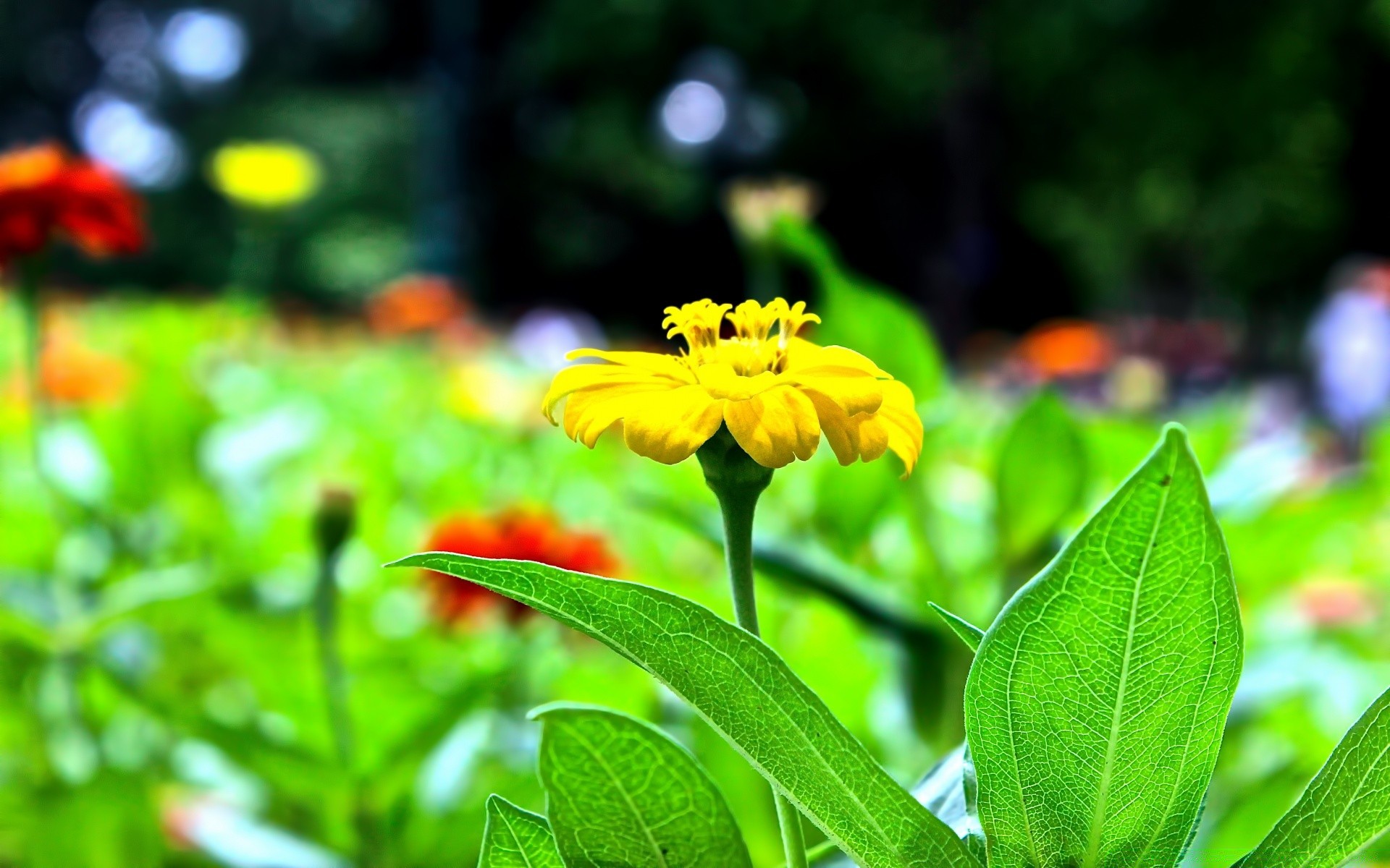 Fleur jaune sur fond flou