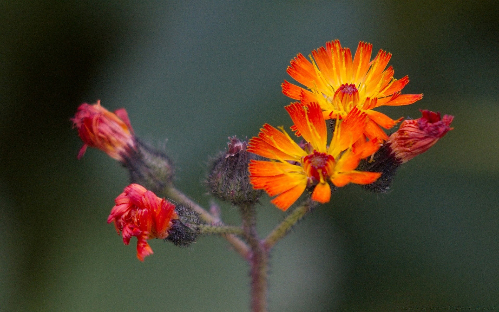 Partie d'une fleur de camomille dans des tons bleus sur fond vert