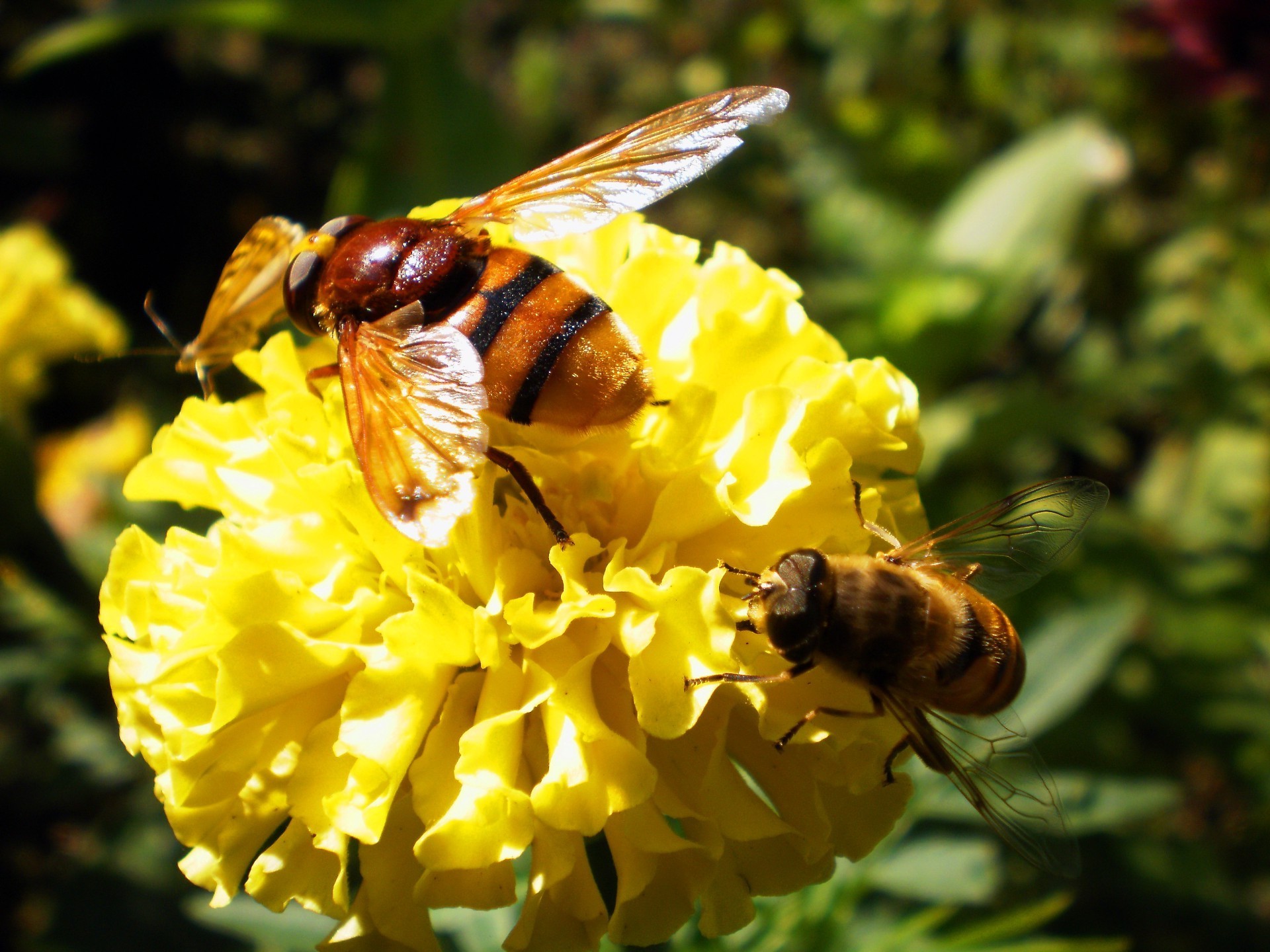 Trois coccinelles sur fond de pissenlit et de marguerites