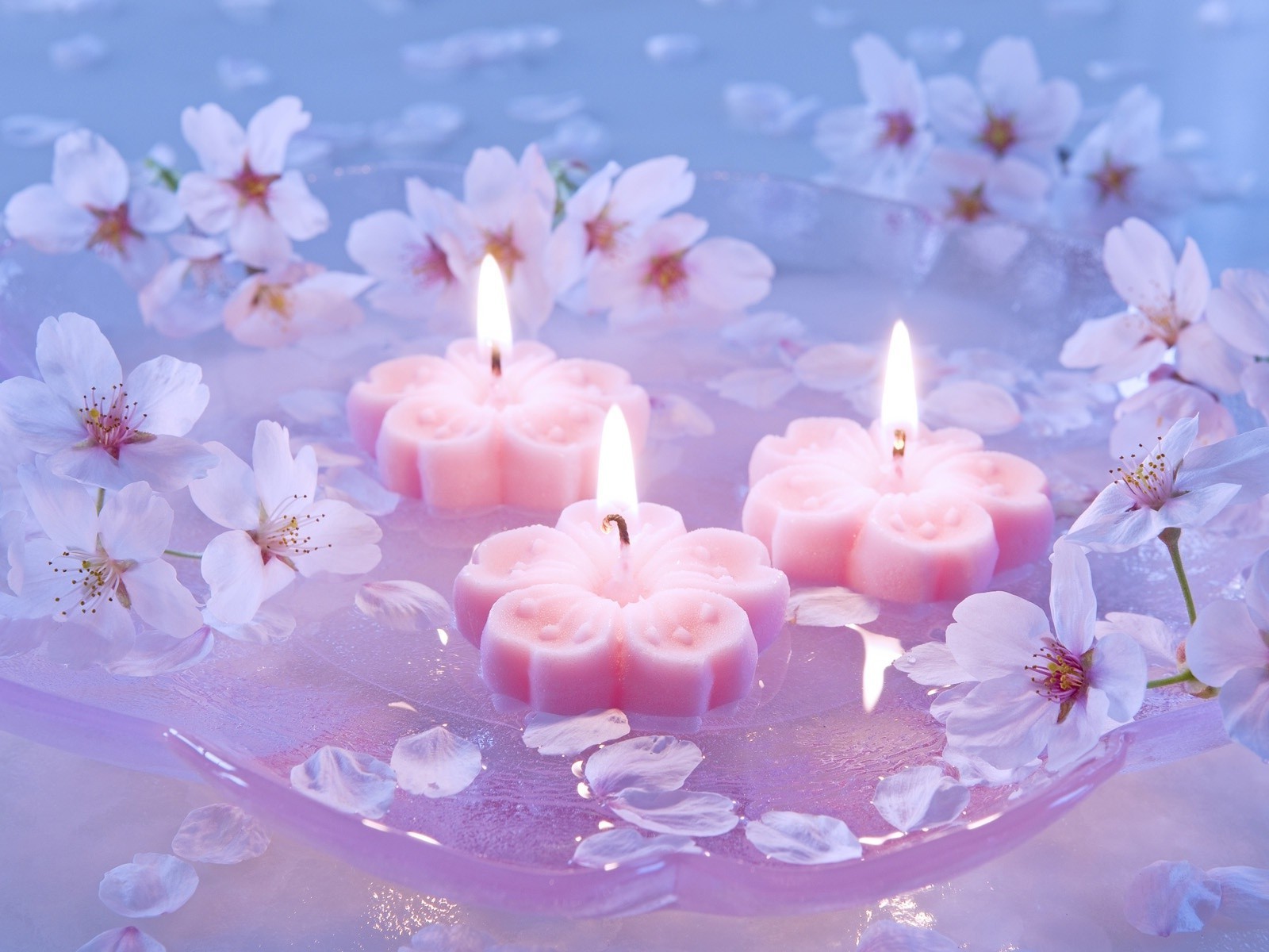 Bougies flottantes dans l'eau avec des fleurs