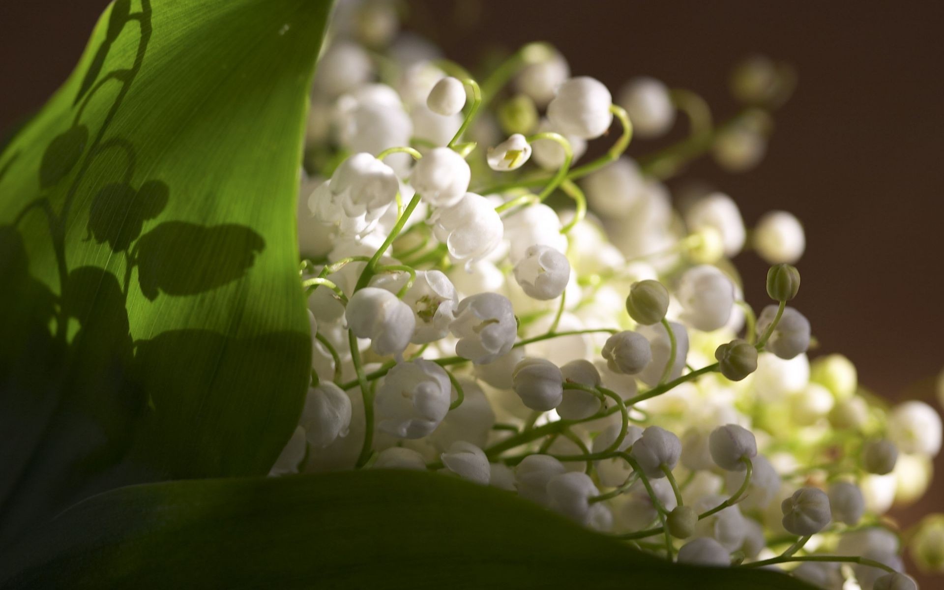 Feuilles vertes et fleurs blanches de muguet