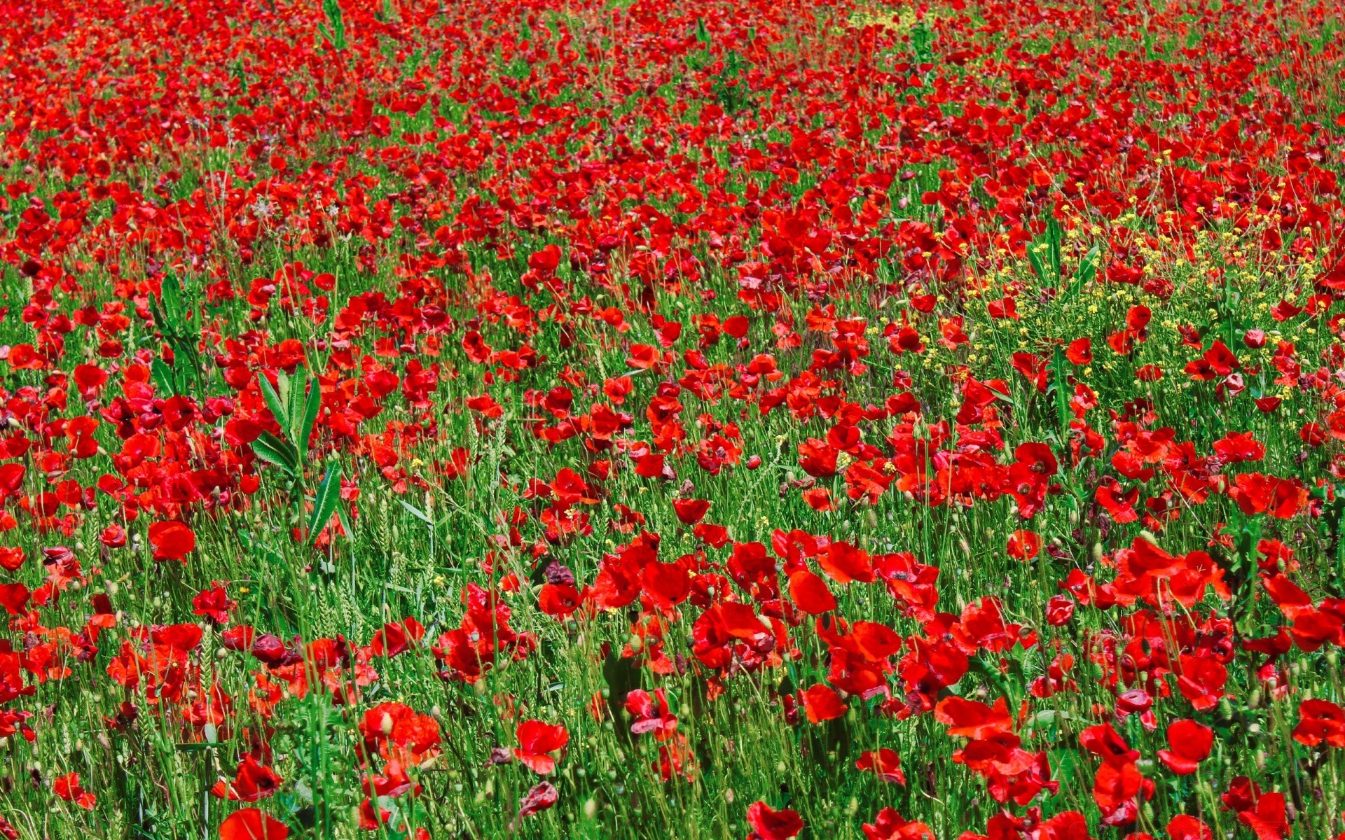 Clairière avec coquelicots rouges sur fond de coucher de soleil